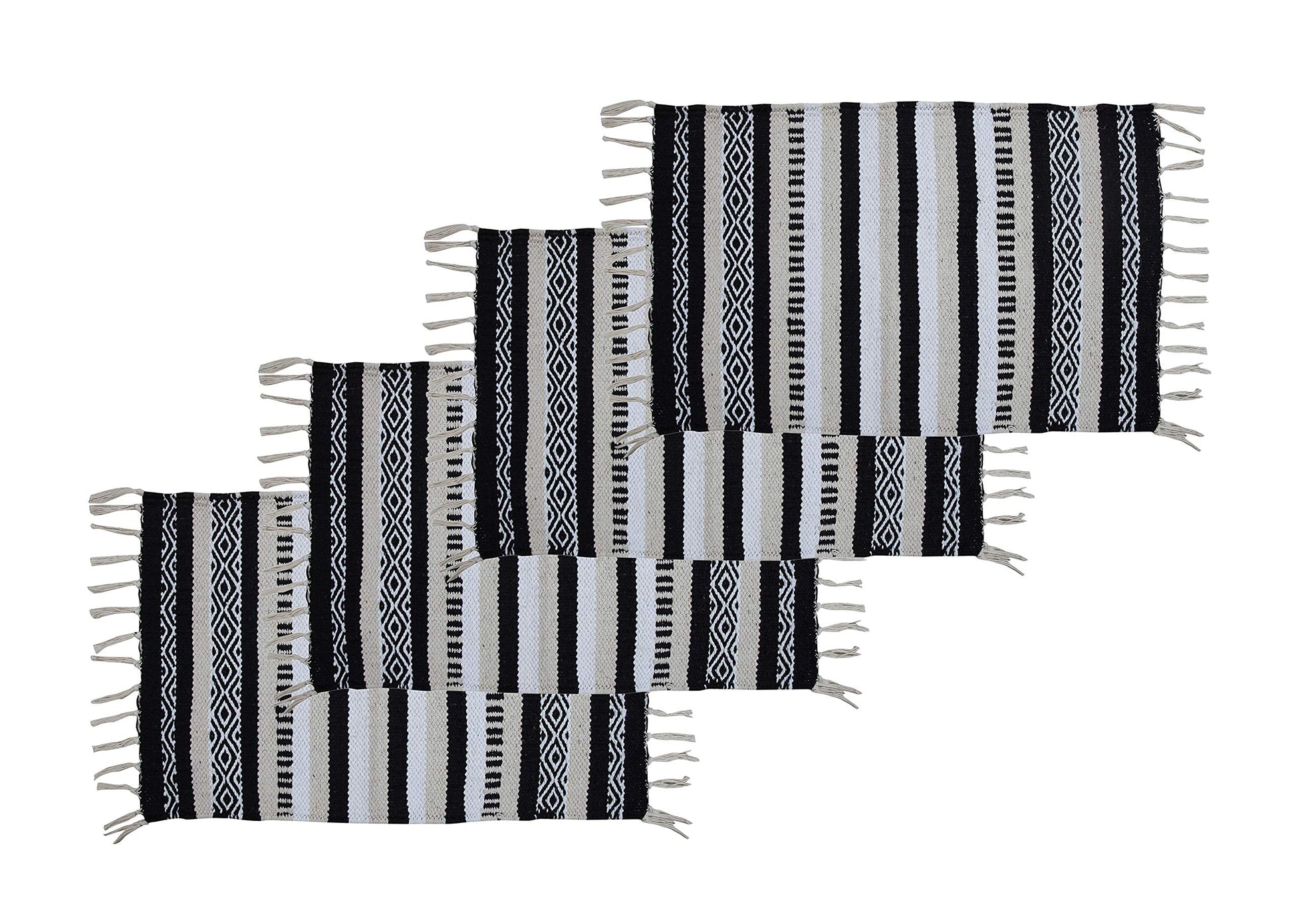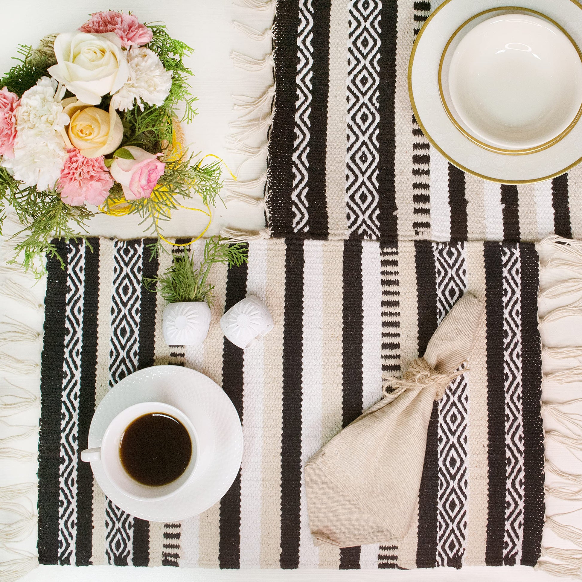 CHARDIN HOME Black, Cream, White Boho Placemats (Set of 4) | Cotton Farmhouse Placemats 13x19 Inches| Machine Washable, Durable and Easy to Combine