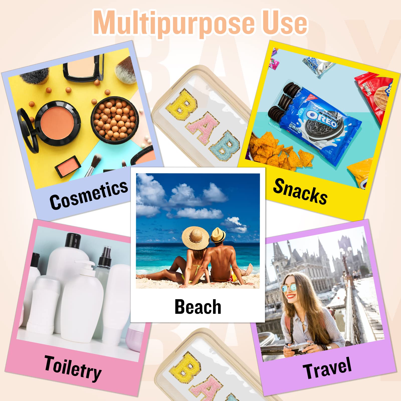 Chenille Letter Clear Makeup Bag with Zipper and Waterproof Nylon