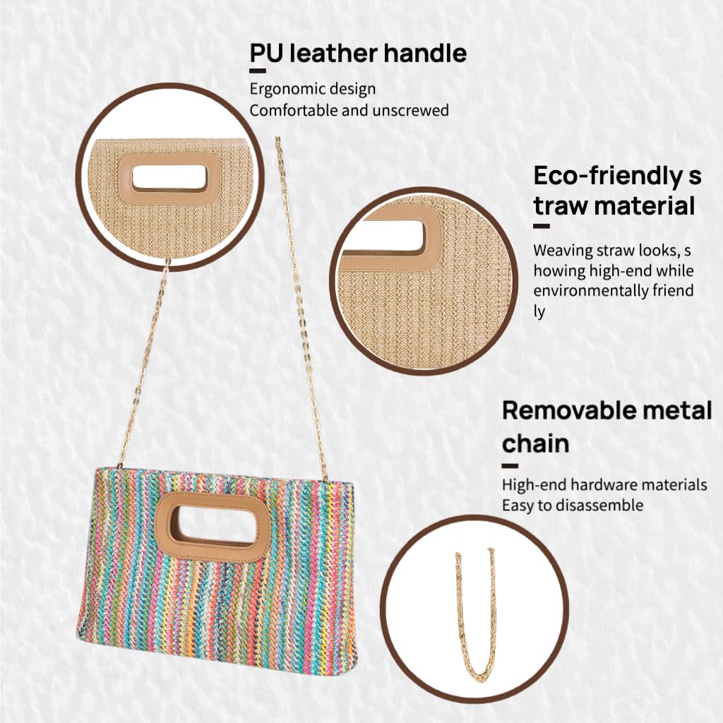 ChiHaul Chic Handbags for Women、Summer Clutch Purse with Handle、Woven Bags Suitable for Party and Beach(Rainbow)