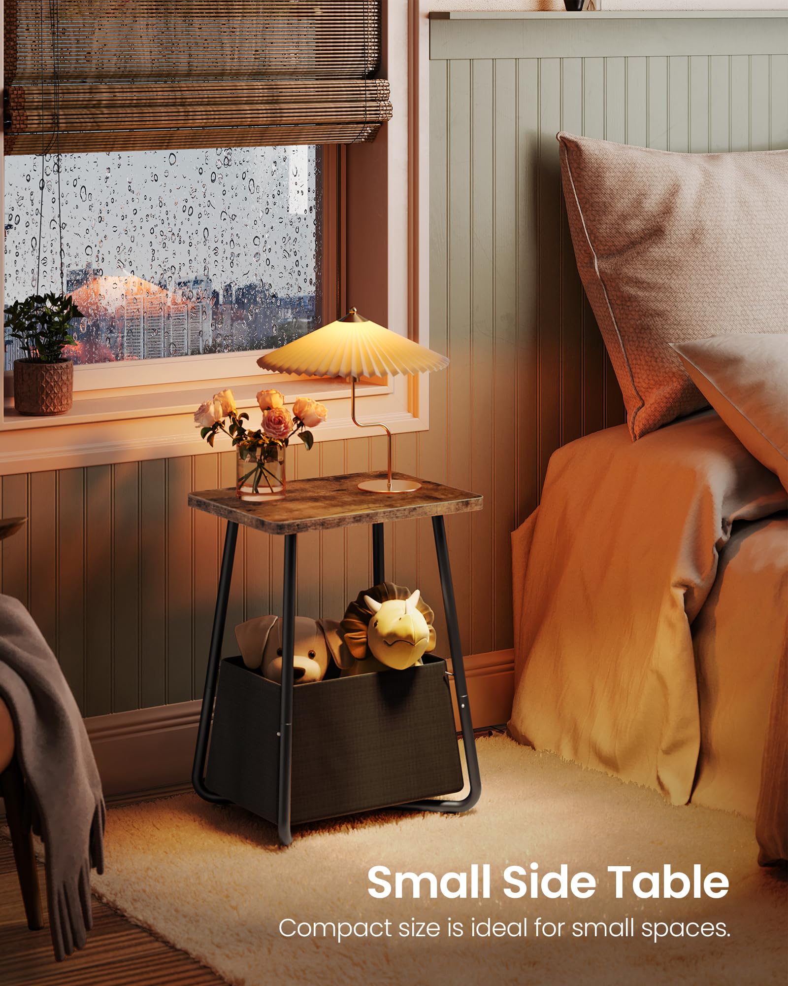 CHOEZON Small Side Table, Nightstand with Detachable Oxford Fabric Basket, Bedside Table, for Small Spaces, End Table, for Nursery, Living Room, Bedroom, Rustic Brown TBZ13BF