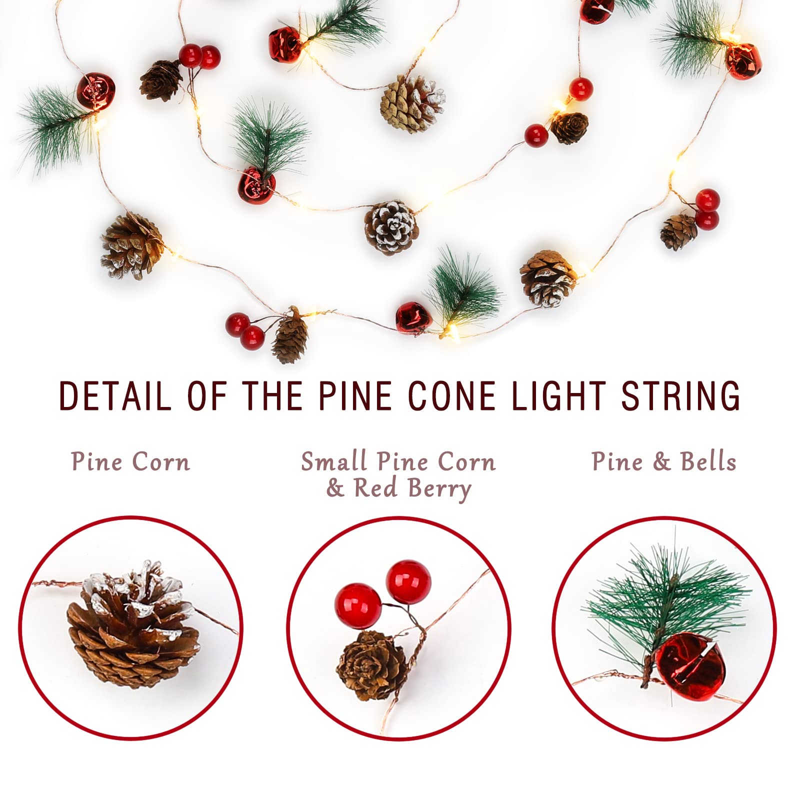 - garland christmas decorations - The pine cone wreath is powered by 3 AA batteries (not included), convenient to use, easy to operate, and can be switched on and off at any time, so you don't have to worry about wires and where to plug them in. christmas decorations indoor-christmas mantle decor-christmas decorations indoor home decor clearance。