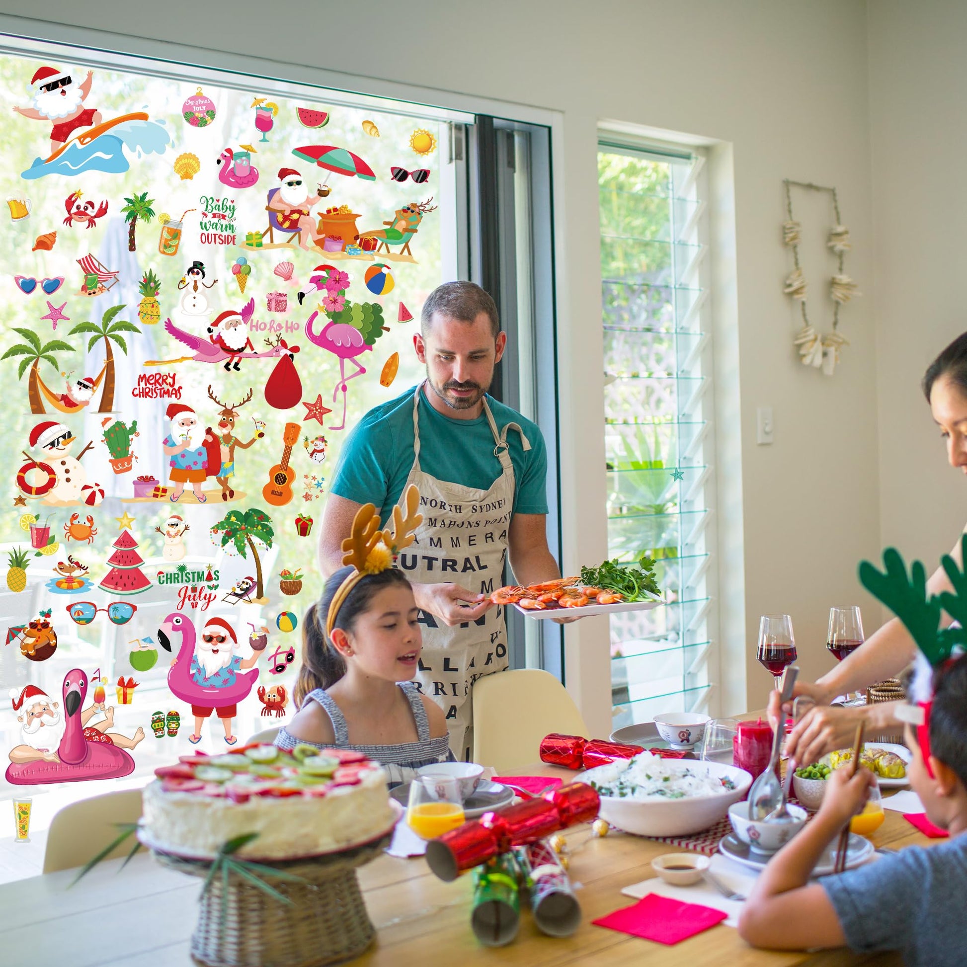 - Package Includes: You will receive 9 sheets summer Christmas window clings, which measure 7.87 ×11.8 inches to decorate your home and celebrate funny Christmas.