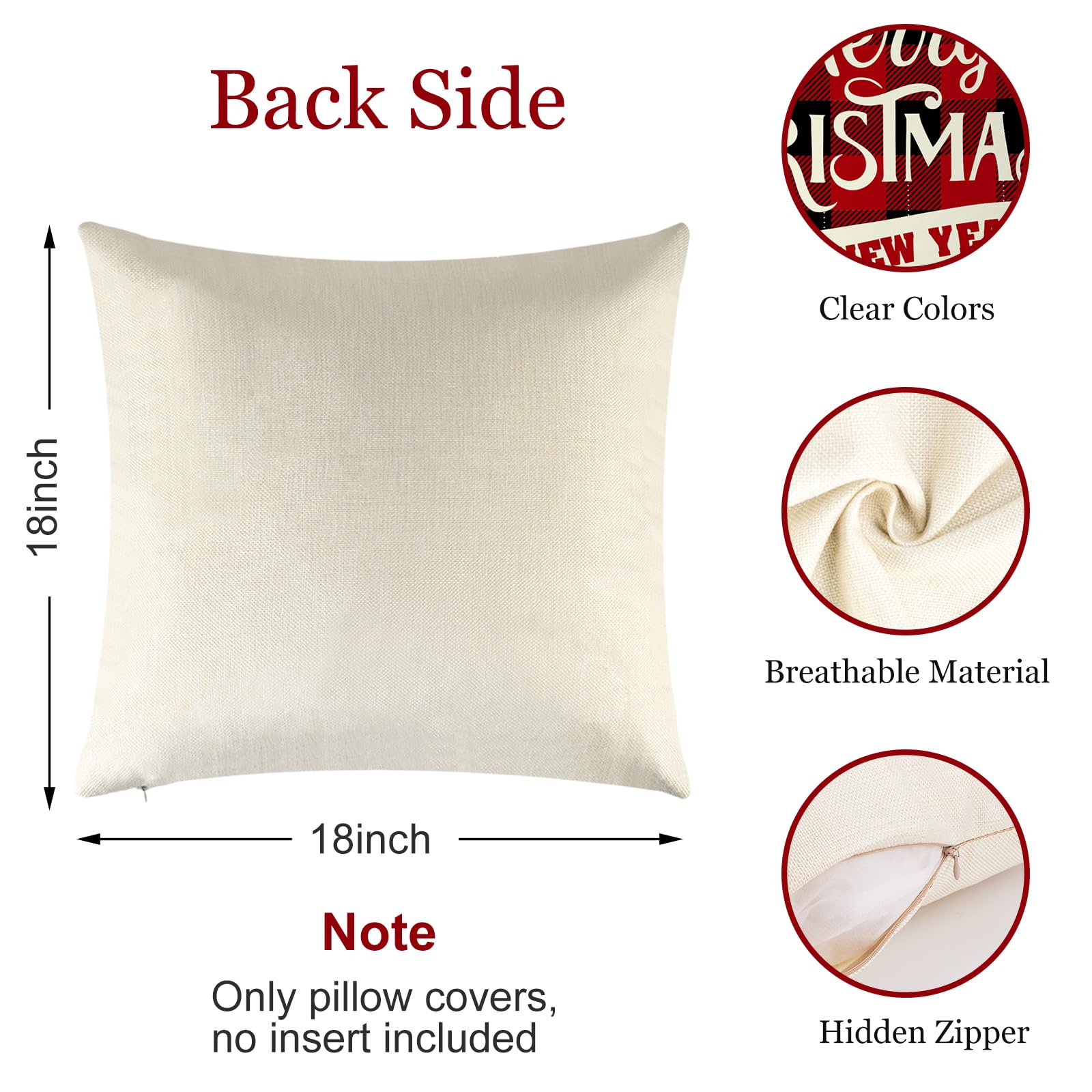 - [Package Included] Christmas Pillow Covers 18x18 Set of 4 ( Not include Insert or filler ). TIPS: The christmas decor pillow cases are 18 x 18 inch. Pattern is only on the front and no printing on the back.