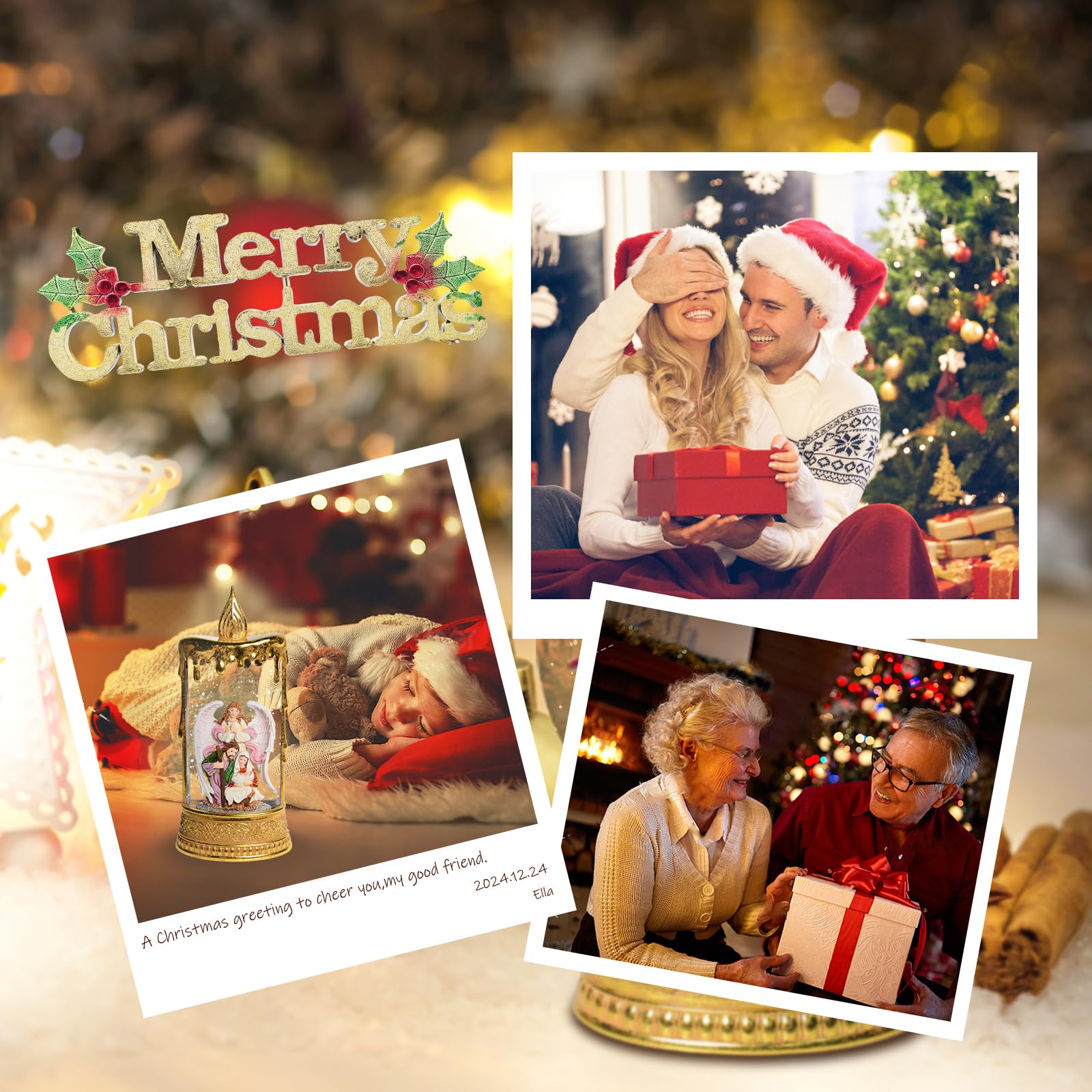Christmas Snow Globes, 11.8" Nativity Glitter Water Lantern with Song, 6H Timer Battery & USB Powered Music Box for Christmas Decorations Indoor