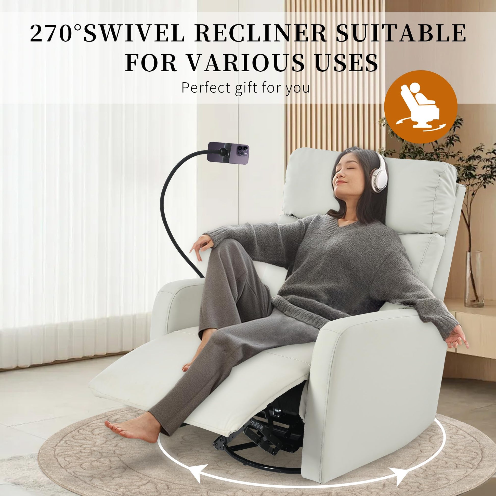 CHSICFOR Modern Recliner, Swivel Glider Chair, Nursery Reclining Sofa with Lumbar Support, Adult Soft Padded Faux Leather, 360 Free Rotation, Removable Phone Holder, Gray