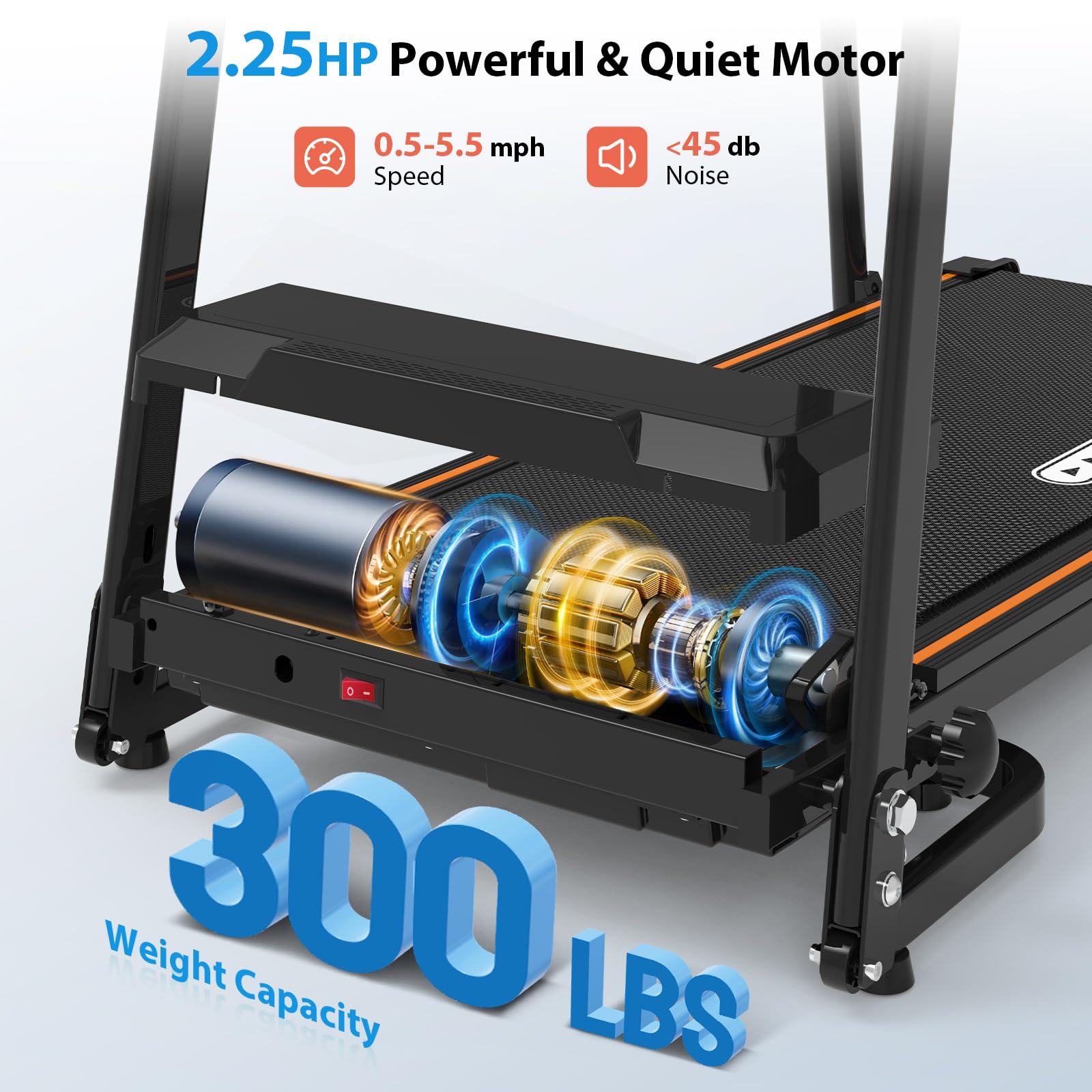 - 【Powerful & Functional】This senior walking treadmill with handrails is equipped with a 2.25 HP motor, capable of bearing a weight of up to 300 pounds and offering a speed range from 0.5 to 5.5 mph. What's more, it comes with convenient cup holders and a heart rate sensor. It's an ideal choice for seniors to enjoy a comfortable and effective workout experience at home.