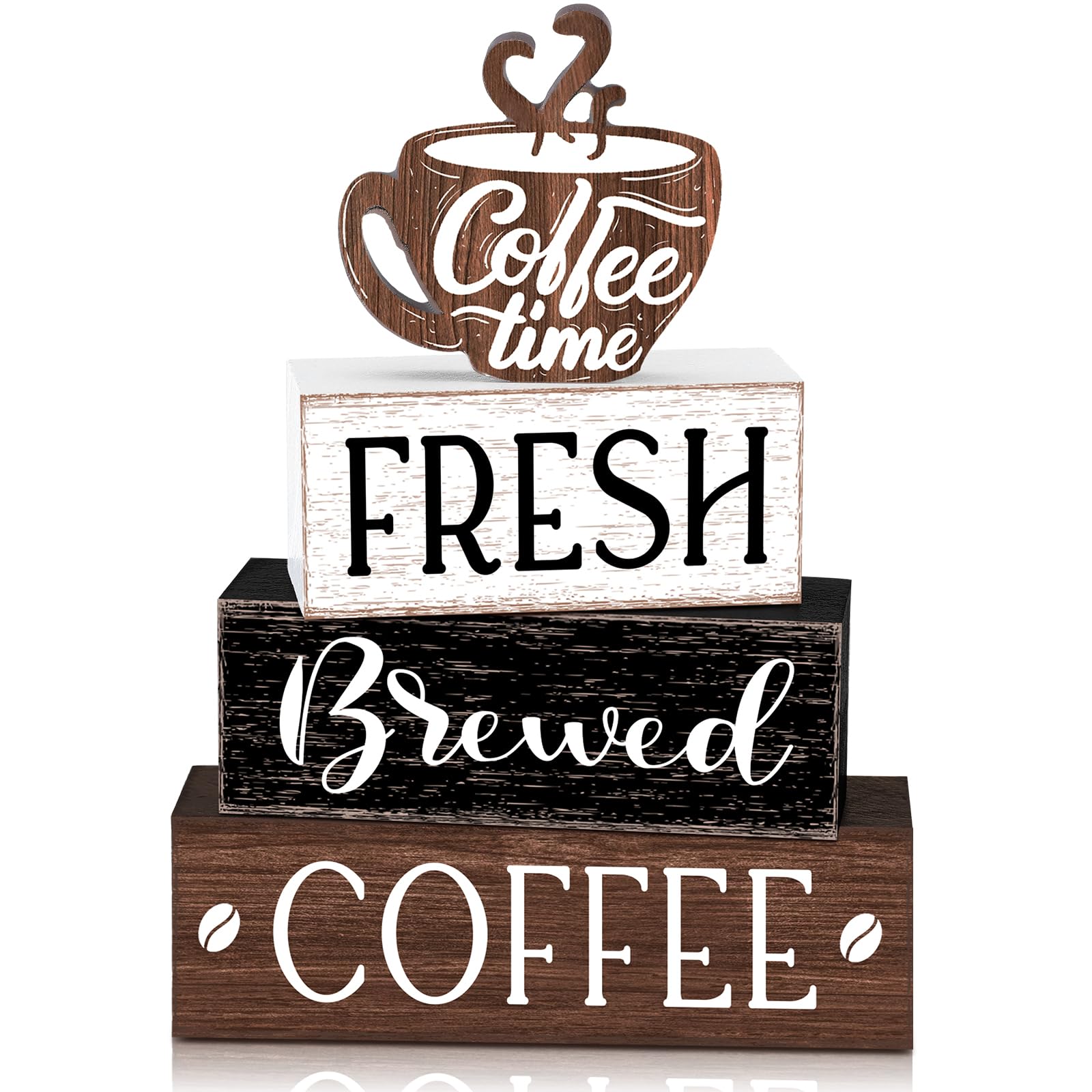 - Style: available in classic brown, black and white colors, our wooden coffee tabletop decor creates style and character; Top coffee cup design, they can complement home and coffee bar station interior, adding a refreshing yet vintage charm to your decor