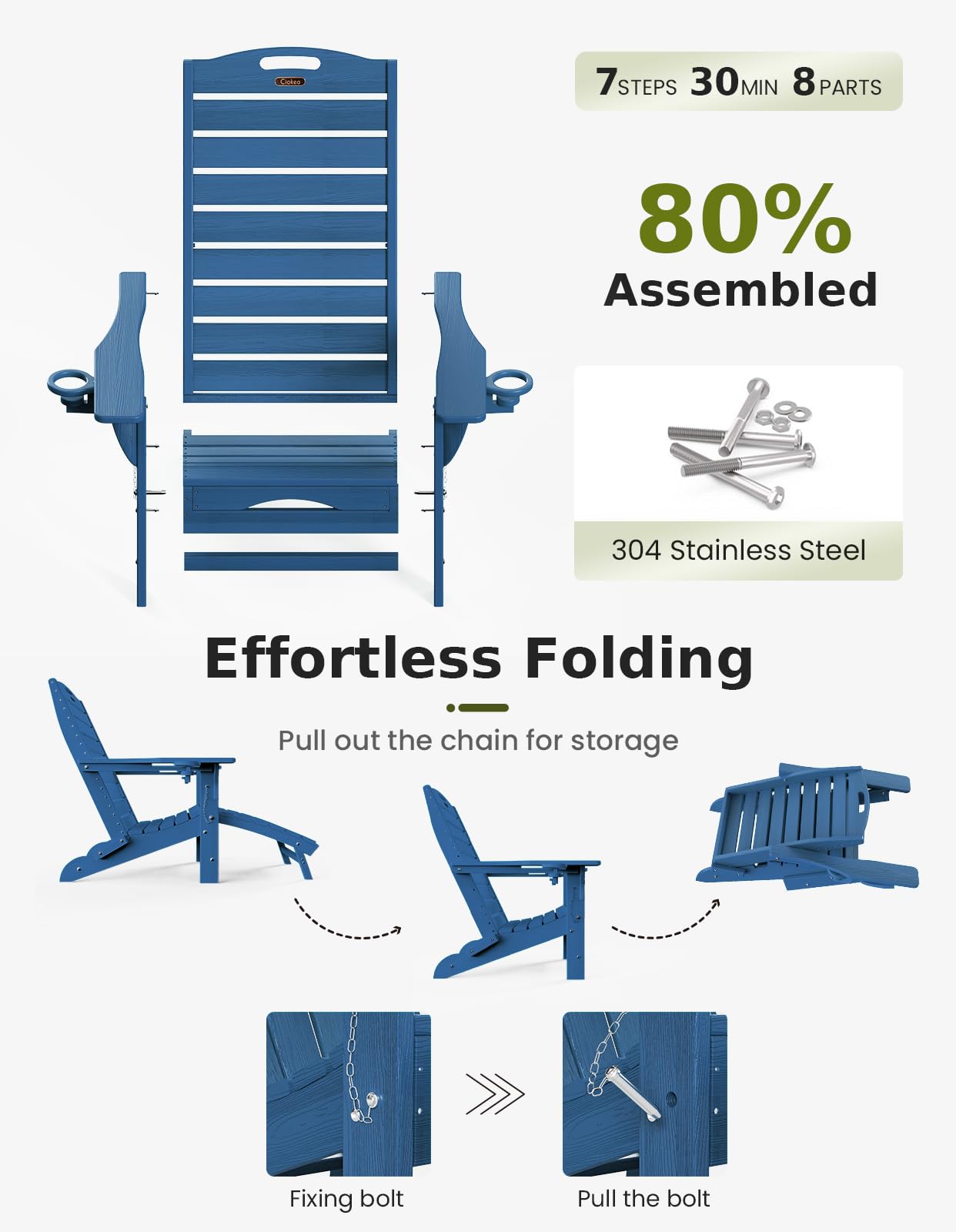 - 【Strong and Durable】Our Adirondack chair is made of HDPE material. NO-Crack and NO-fade Using in all year around, Won't be damaged even in rainy days