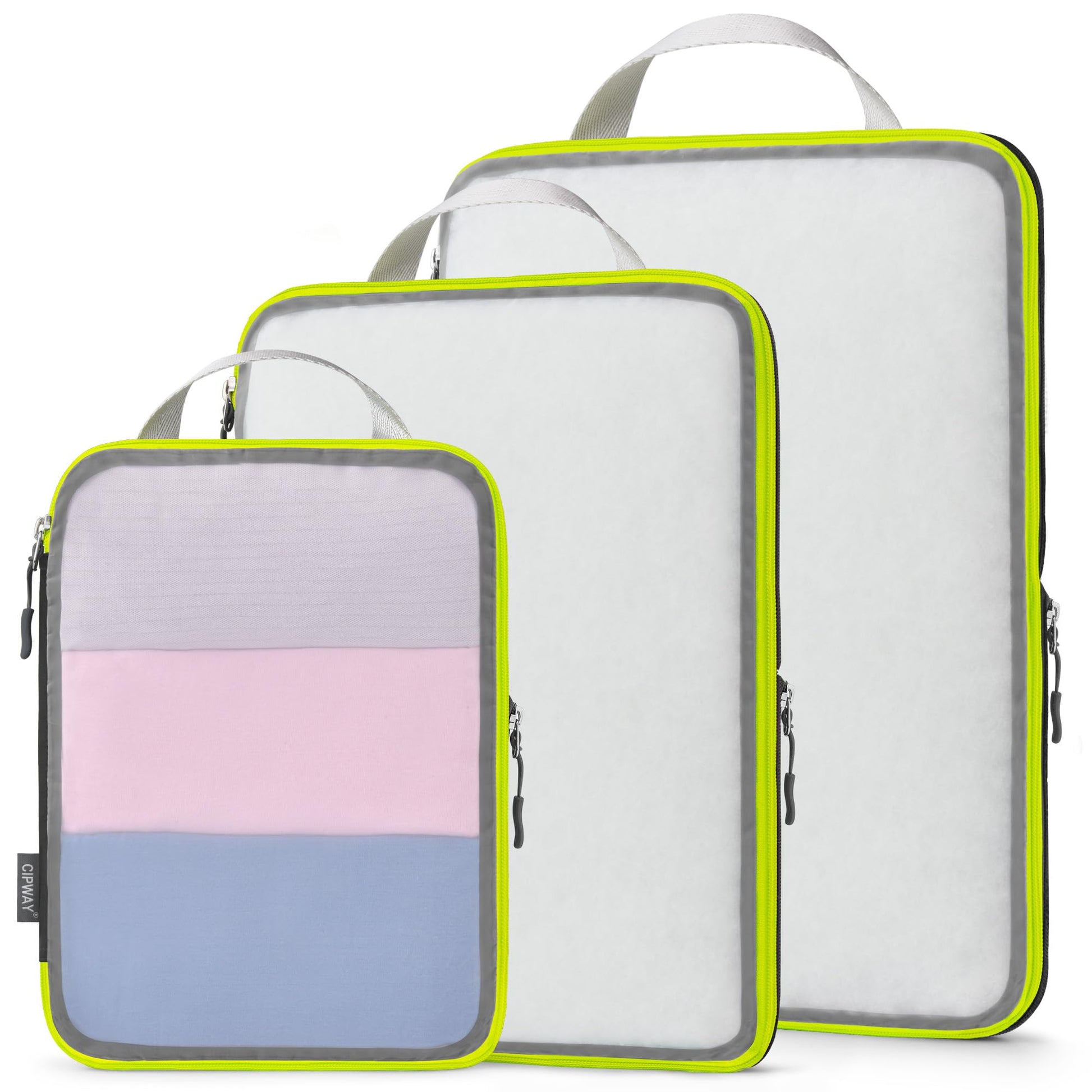 Cipway Mesh Compression Packing Cubes, Ultralight See Through Luggage Organizer Bags, Travel Essentials for Carry on Suitcase (3Pcs,Black)
