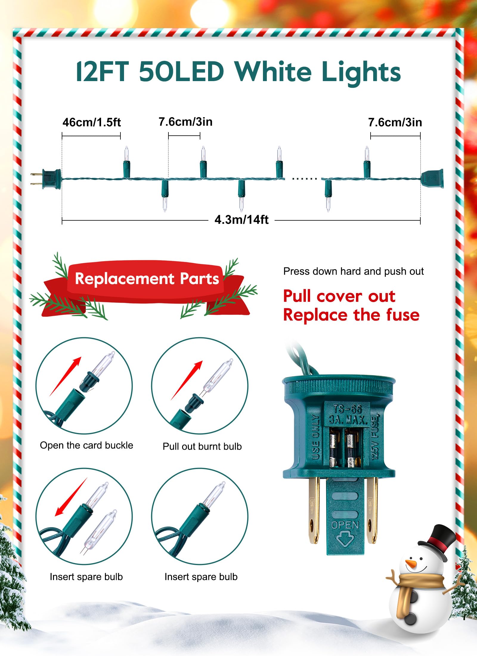 - Creative Mini Christmas Lights Set: Brightown Christmas light component of Christmas-green wire and 50 counts of transparent fairy incandescent mini lights, the total length of the string light is 13 feet, and each bulb is 3 inches apart. You can connect our indoor string light end-to-end to up to 10 creative light strings for meeting any decoration needs