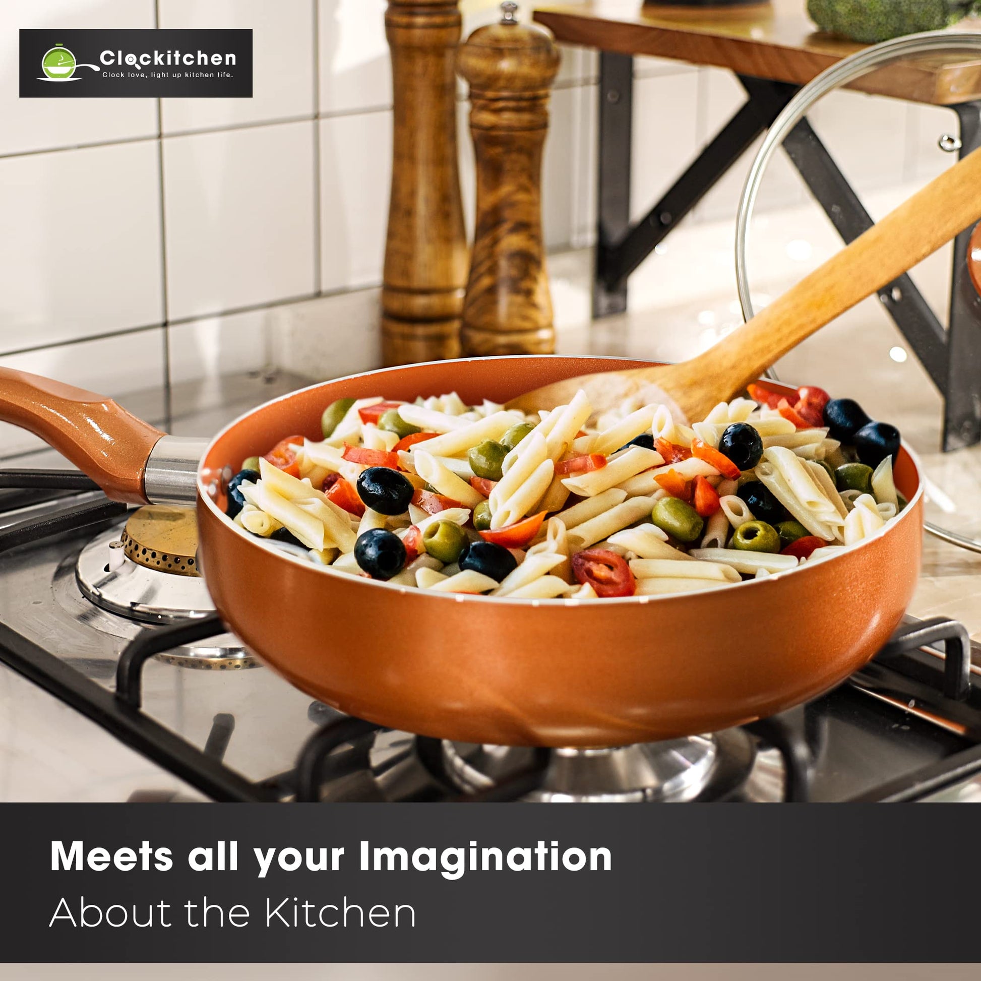 Clockitchen Non Stick Pots and Pan Set, 10pcs Cookware Set with Ceramic Coating, Non-toxic Cooking Pot, Compatible with All Stoves, Copper