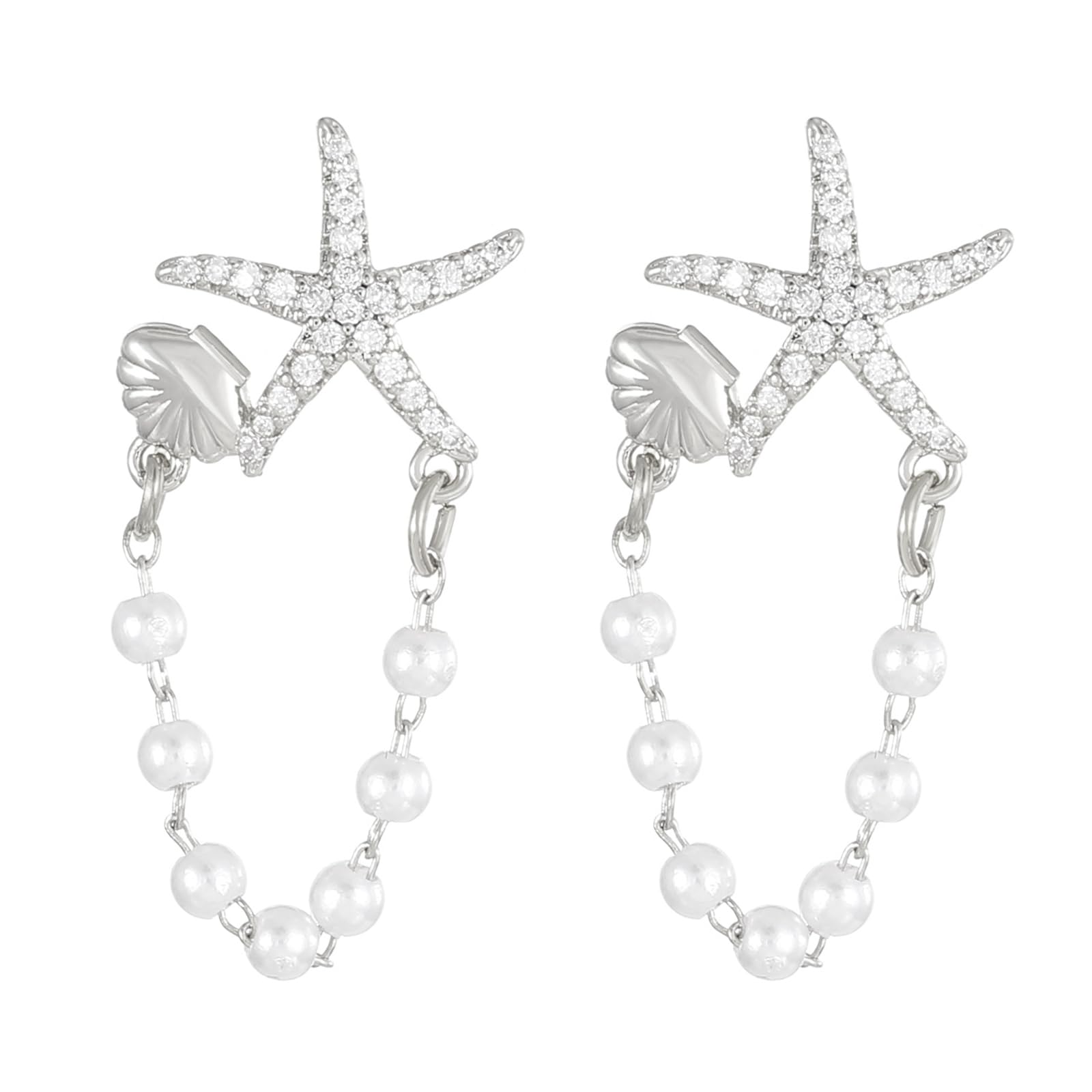coadipress Starfish Earrings for Women Dainty Rhinestone Starfish Shell Pearl Earrings 18k Gold Plated Sea Star Dangle Earrings Statement Earrings Summer Beach Ocean Jewelry Gifts