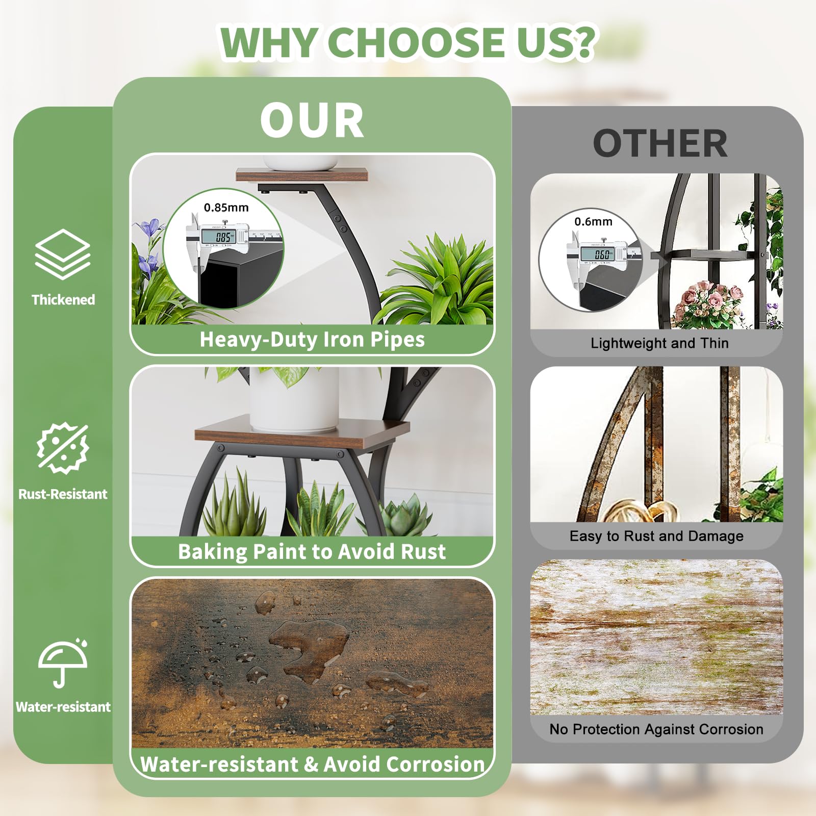 - 【Elegant Tree-Shaped Design】This plant stand indoor feature a tree-like structure, it adds a touch of nature, artistic flavor and vitality to your living room, bedroom, or porch. Boasting an six-layer shelf, this tiered plant stand efficiently utilizes vertical space, providing ample room to display your plants and completely saying goodbye to cluttered plants in the room.