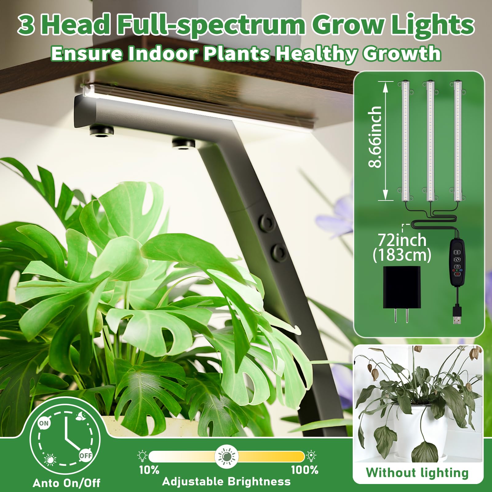 - 【Illuminate Your Indoor Plants】 Our plant shelf indoor features one three-head, full-spectrum grow lights that provides optimal lighting for your indoor plants. With three timer settings and ten brightness levels, this plant stand with grow light allows you to bathe your houseplants in the ideal glow to keep your plants healthy, you don't need to move your plants outside as often to absorb light.