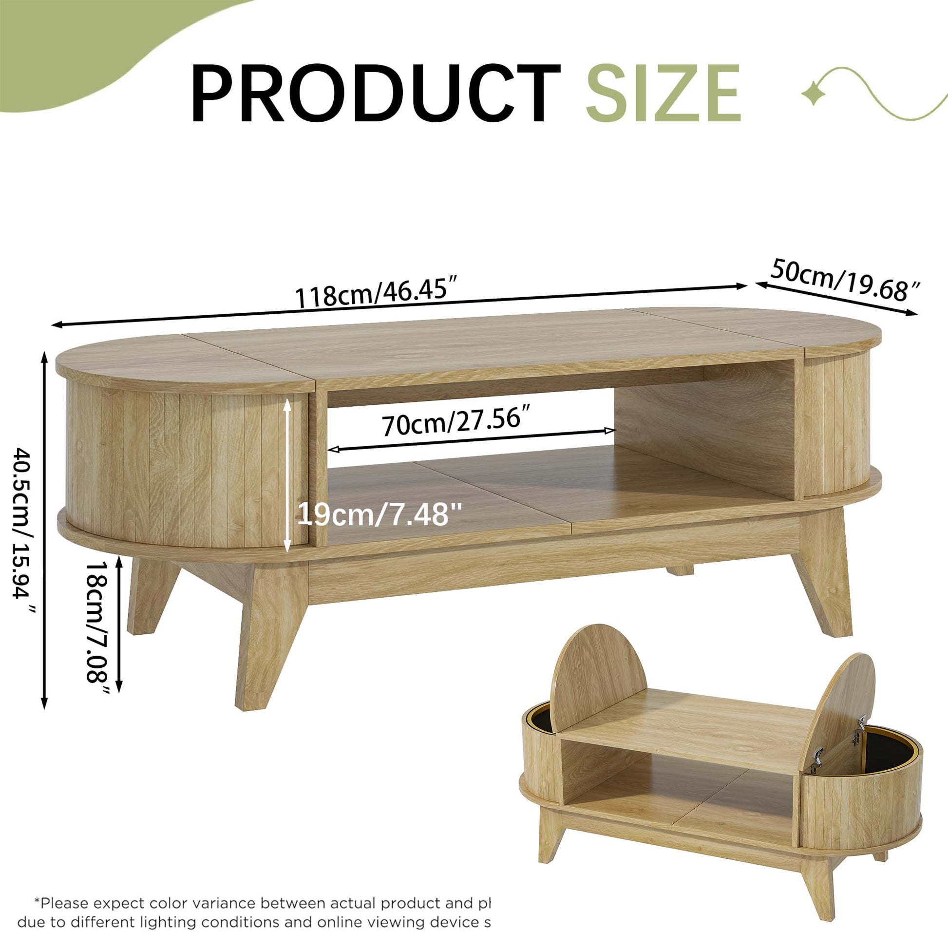 Coffee Table with 2 Hidden Storage,Mid Century Modern Coffee Table with Fluted Finish,Wood Center Tables Oval Coffee Tables with Flip-Top Lids for Living Room Home Office (Oak)