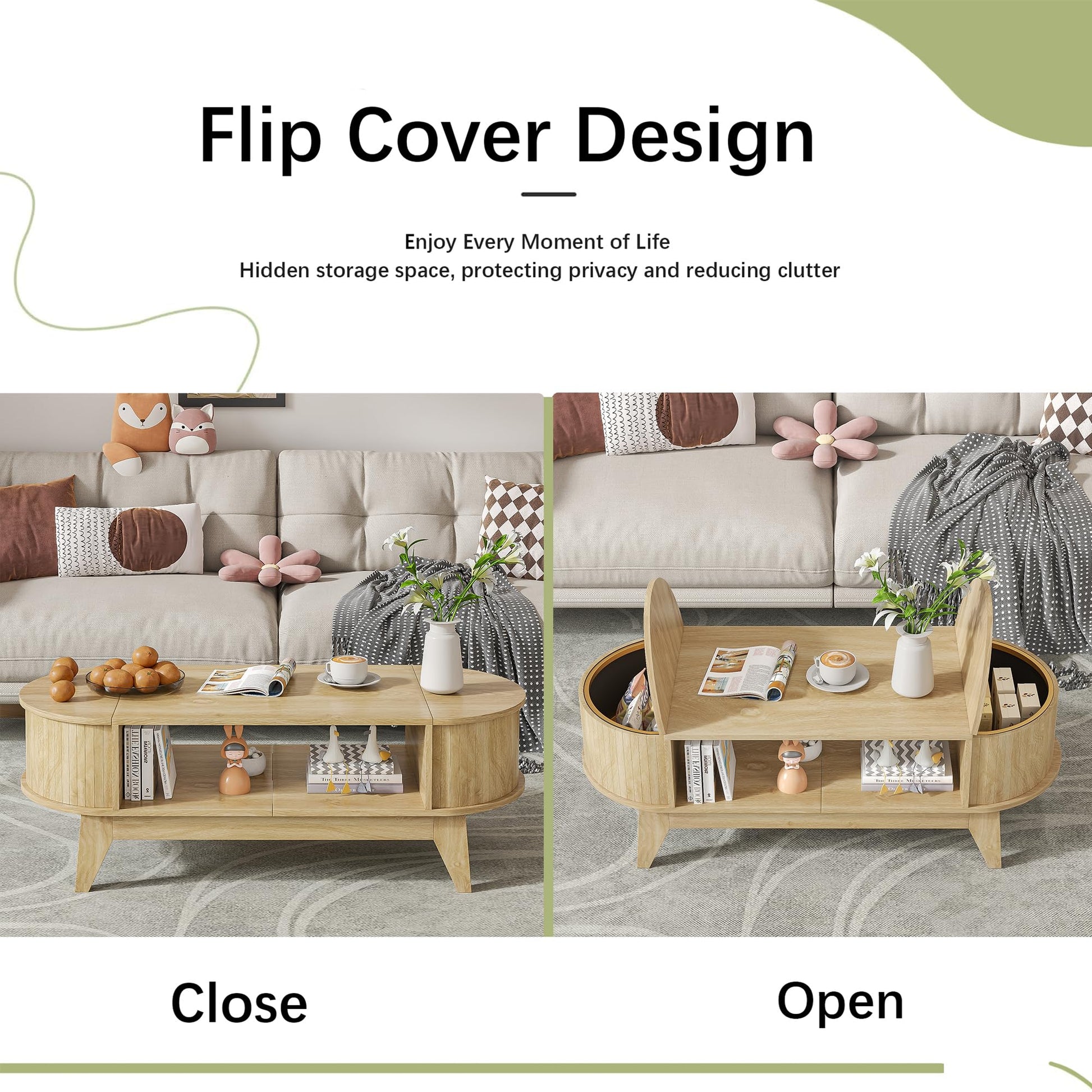 - 2 hidden flip storage spaces: coffee tables for living room have a hidden storage compartment on the left and right sides, providing you with extra space to store your blankets, snacks, toys, game consoles, etc., making it easy to store items Avoid clutter and protect your privacy at the same time. The coffee table also has a large open compartment to display your items, making your living room more tidy