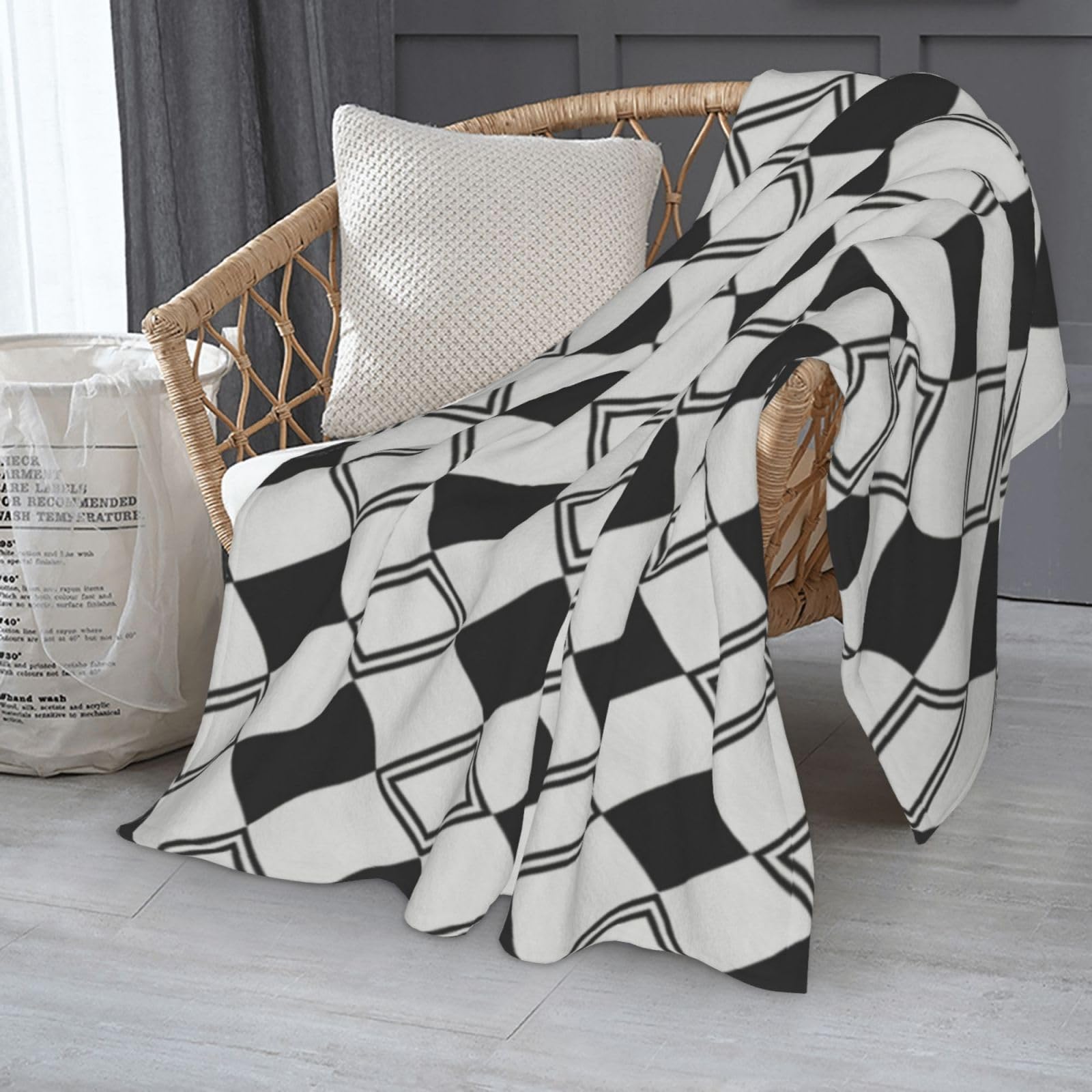 Coipdfty Checkered Blanket Plaid Throw Blanket Soft Cozy Flannel Blanket for Couch Bed (Black Oblique Rectangles, Throw 50"x60")