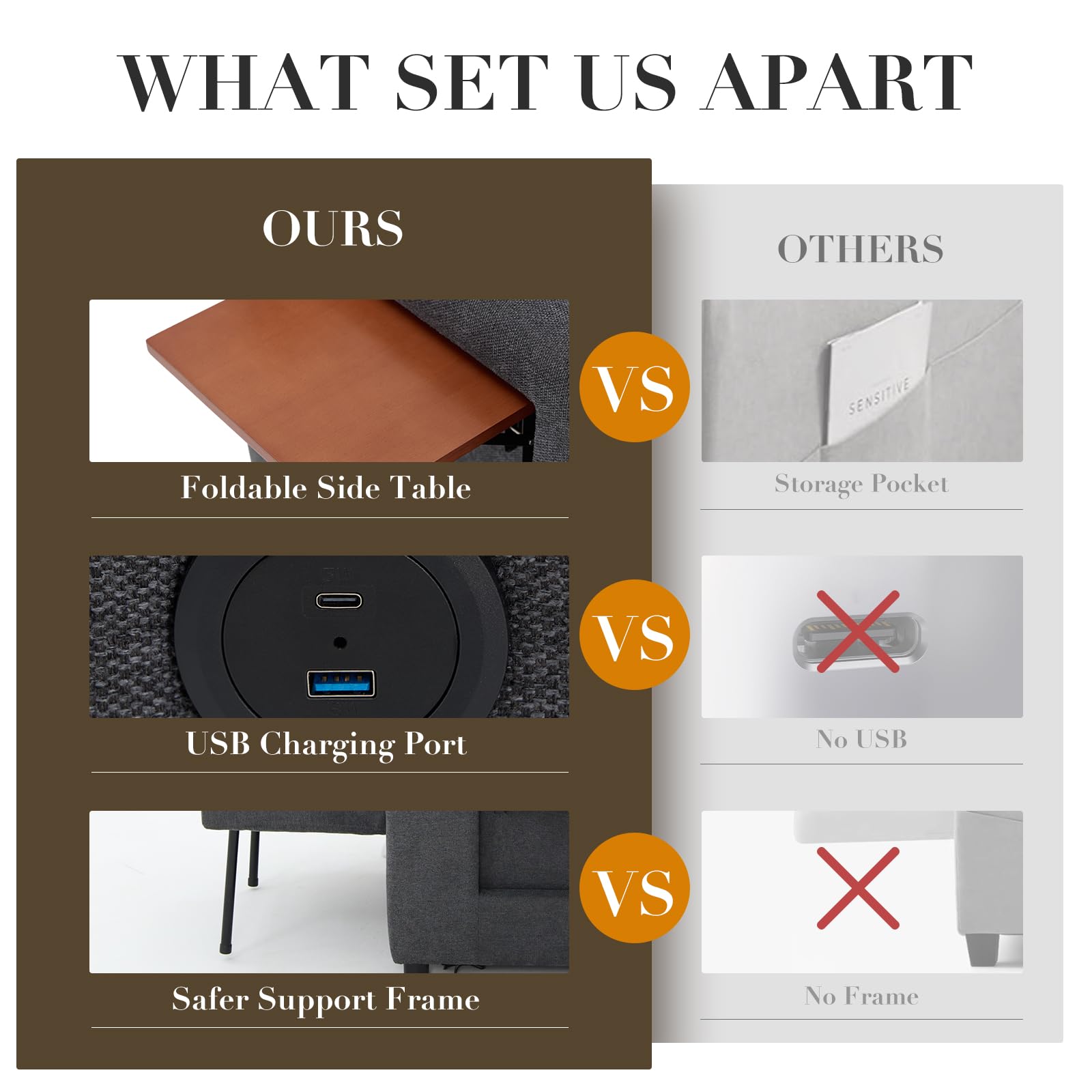 - SLEEPER SOFA WITH USB PORT: The sleeper couch comes with built-in USB port, allowing you to charge your phone, tablet, or other electronic devices without needing to search for an outlet. Whether you’re lounging, answering calls, or watching videos, you’ll always have easy access to power.
