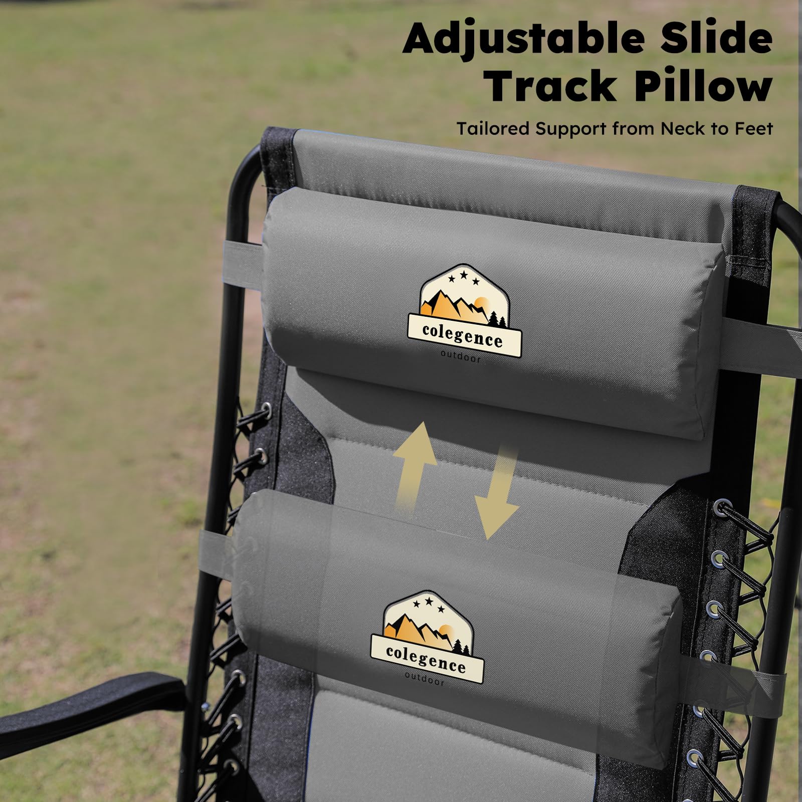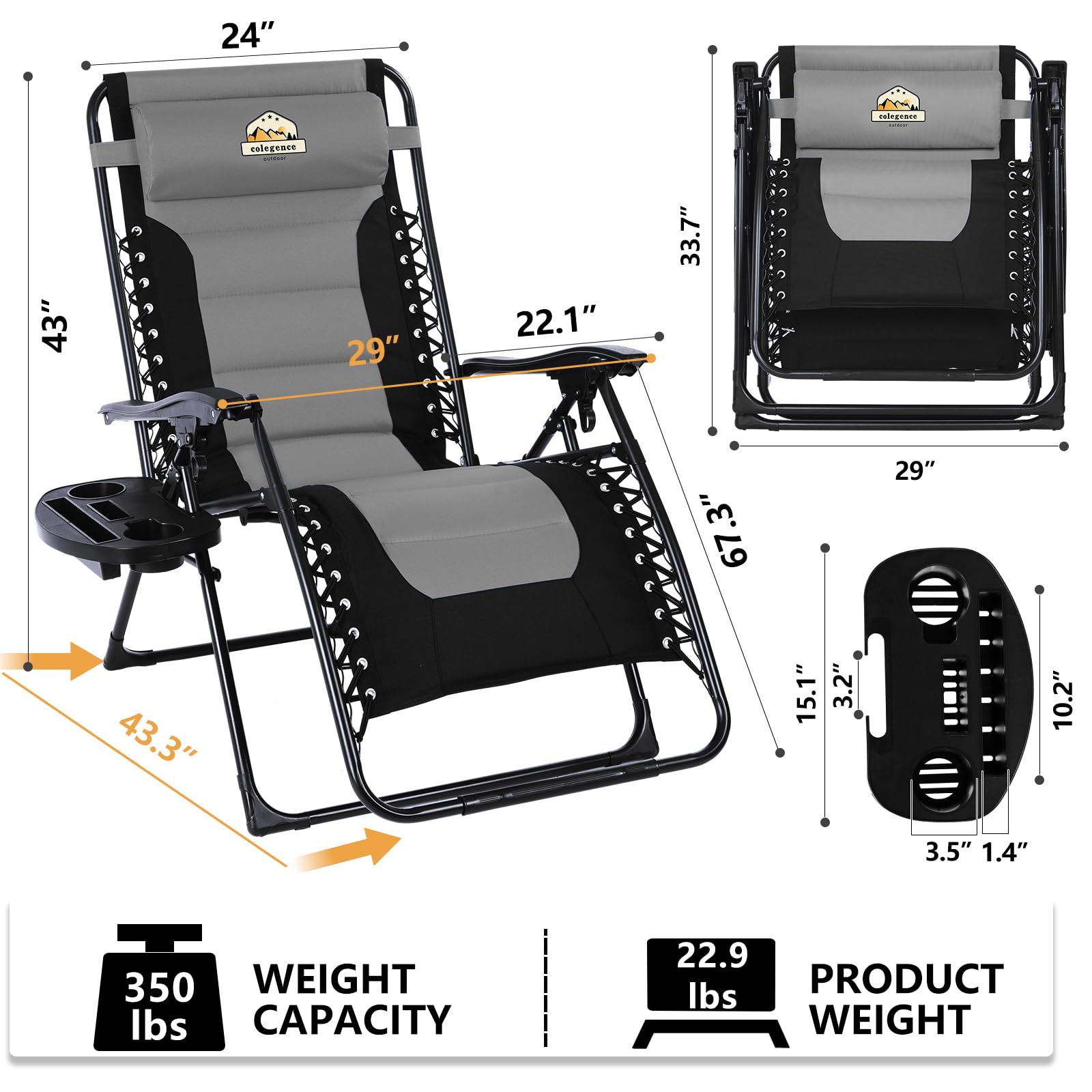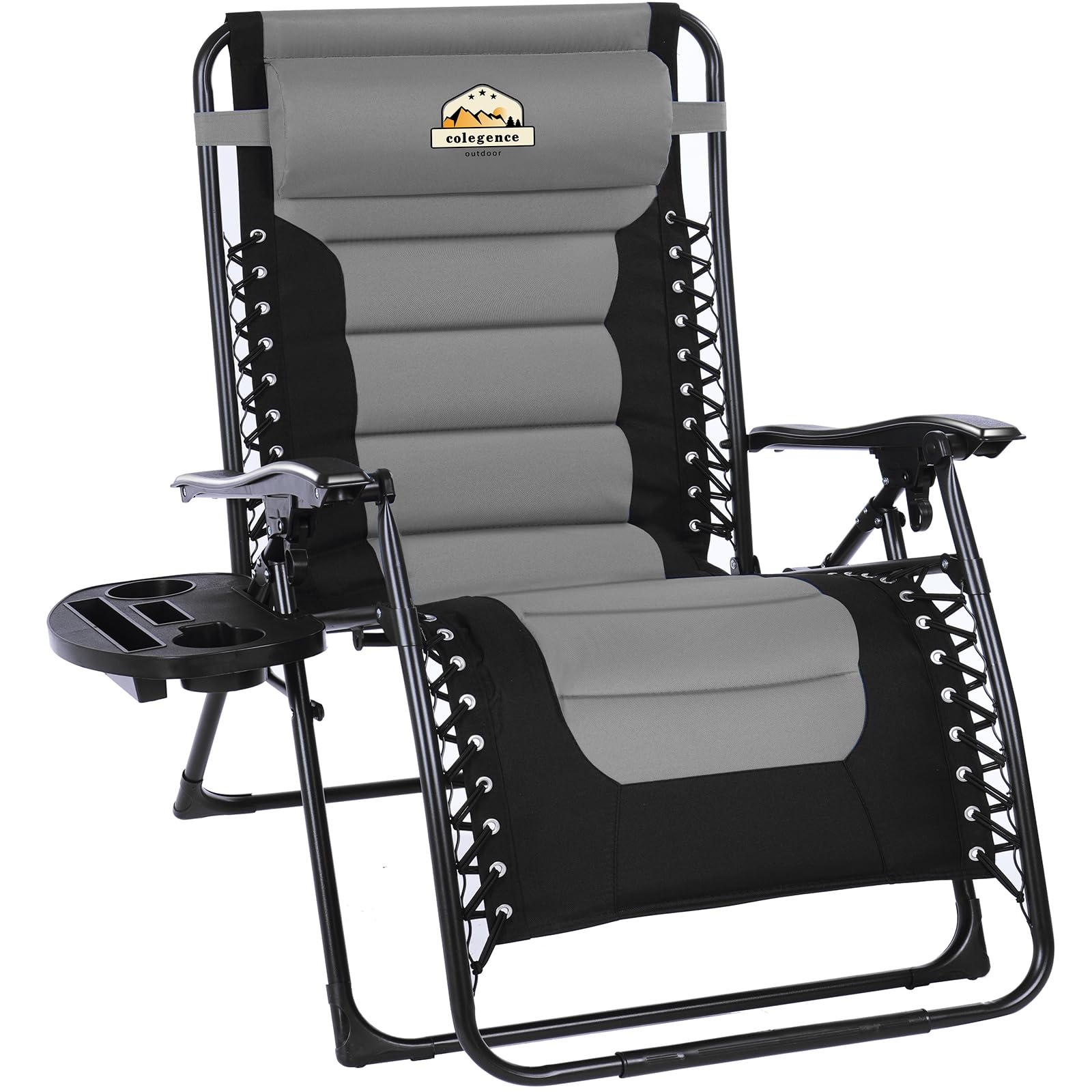 Colegence Oversized Padded Zero Gravity Lounge Chair, Foldable Patio Anti Gravity Reclining Chairs Folding Lawn Recliner with Cup Holder for Yard, Camping, Outdoor, Support 350 LBS, Black