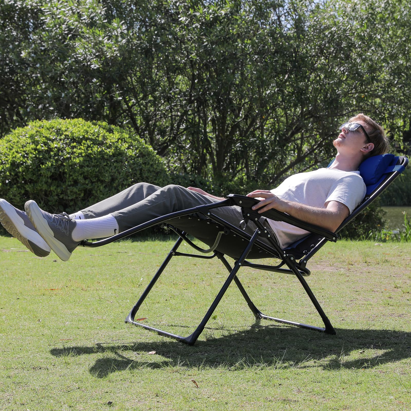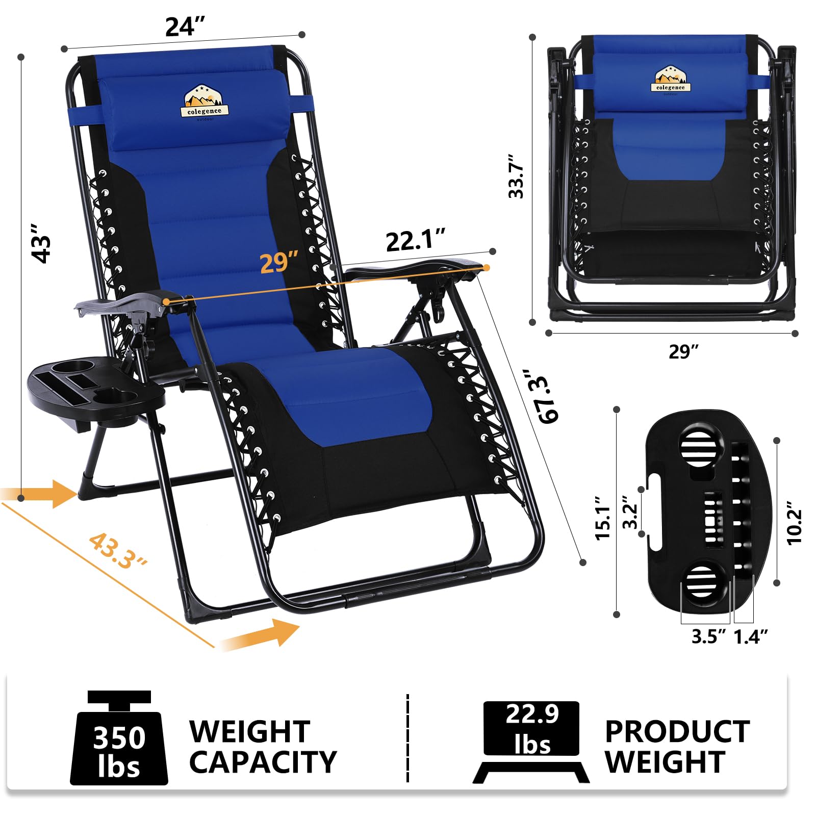 Colegence Oversized Padded Zero Gravity Lounge Chair, Foldable Patio Anti Gravity Reclining Chairs Folding Lawn Recliner with Cup Holder for Yard, Camping, Outdoor, Support 350 LBS, Blue