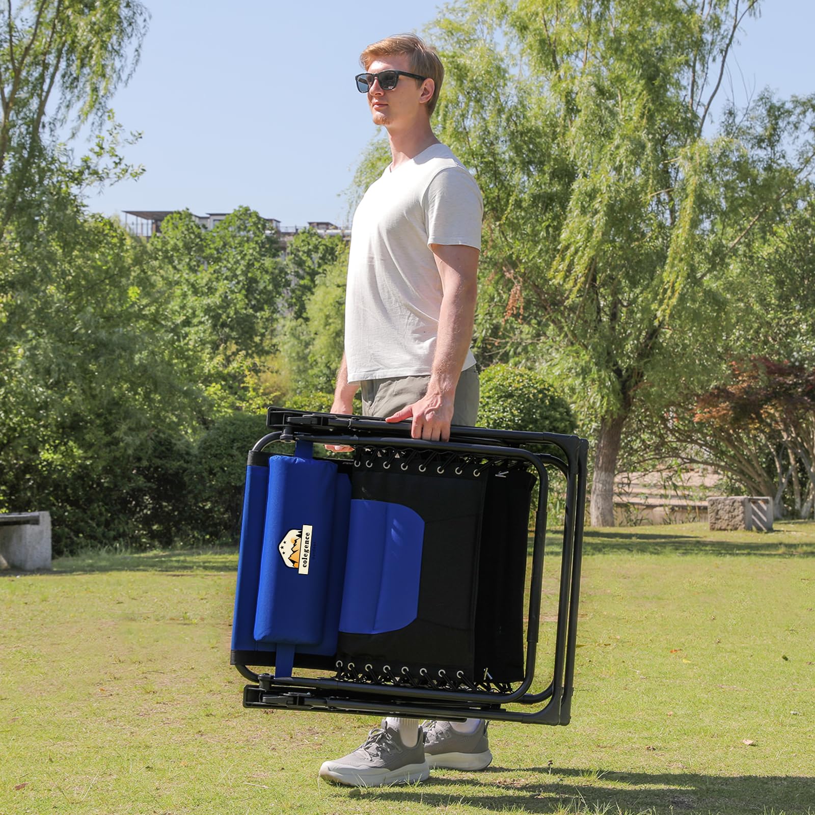 - 【Oversized Seat & 350 Lbs Weight Capacity】Our anti gravity chair is designed to provide with a spacious seat outdoors. The combination of the core part of the 3-strand braided bungee suspension system, high-density 600D oxford fabric, and heavy-duty steel frame with 1.5mm tube walls (50% thicker than ordinary products) makes the recliner outdoor chair has a strong construction to withstand the max weight of 350lbs, which is more than twice of a regular people