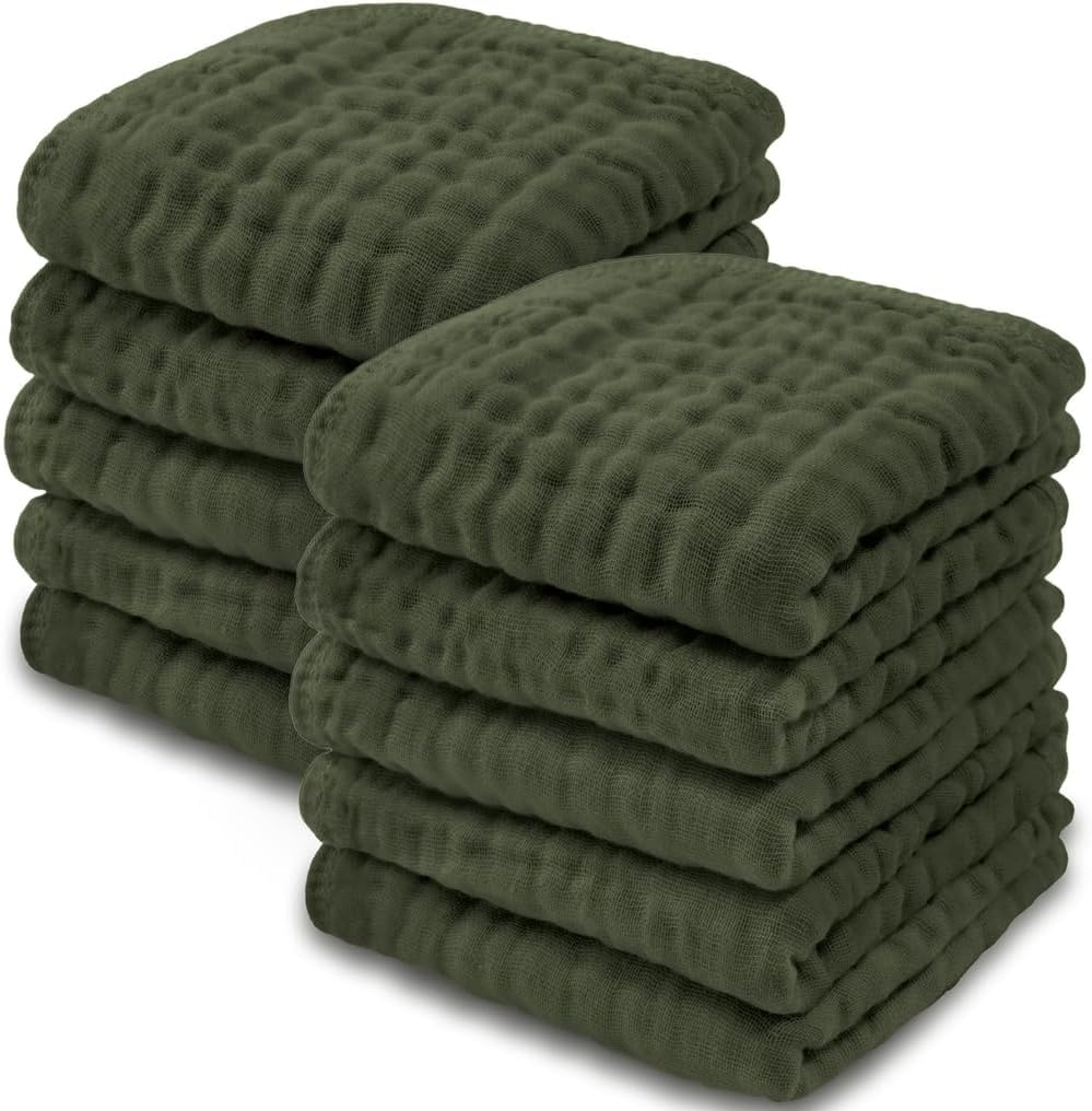 Comfy Cubs Muslin Burp Cloths 20" x 10", Pack of 10 - Large, 6-Layer, Ultra Absorbent 100% Cotton for Baby Drool and Messes - Soft, Safe & Gentle Baby Burp Cloths for Boys & Girls - Multi