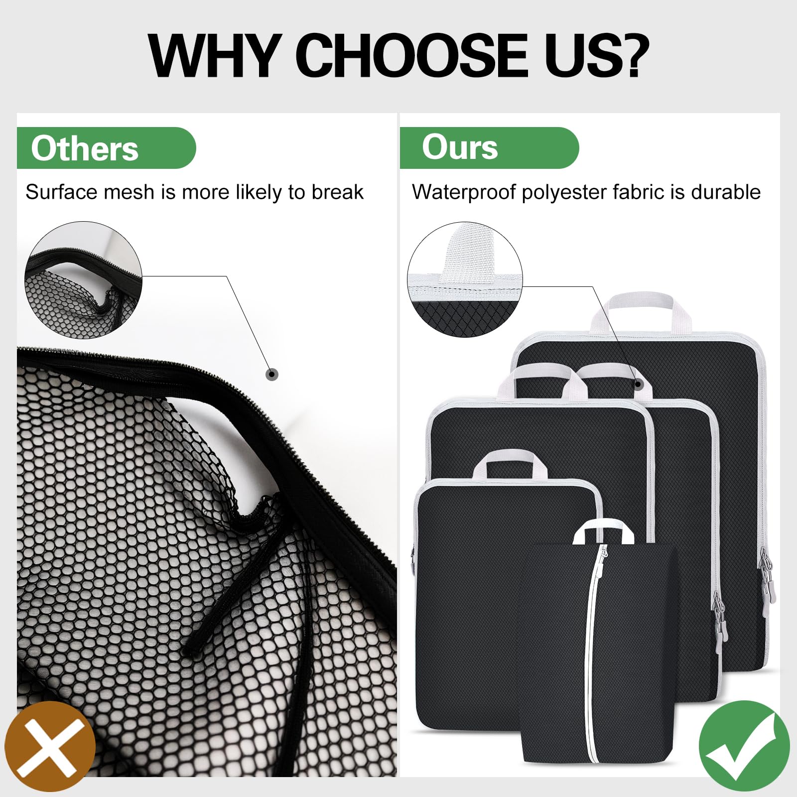 Compression Packing Cubes for Travel,Waterproof Packing Compression Cubes for Travel Packing Organizers,Luggage Cubes for Packing,Ultralight Expandable Packing Cubes Compression (Black 5 Pack)