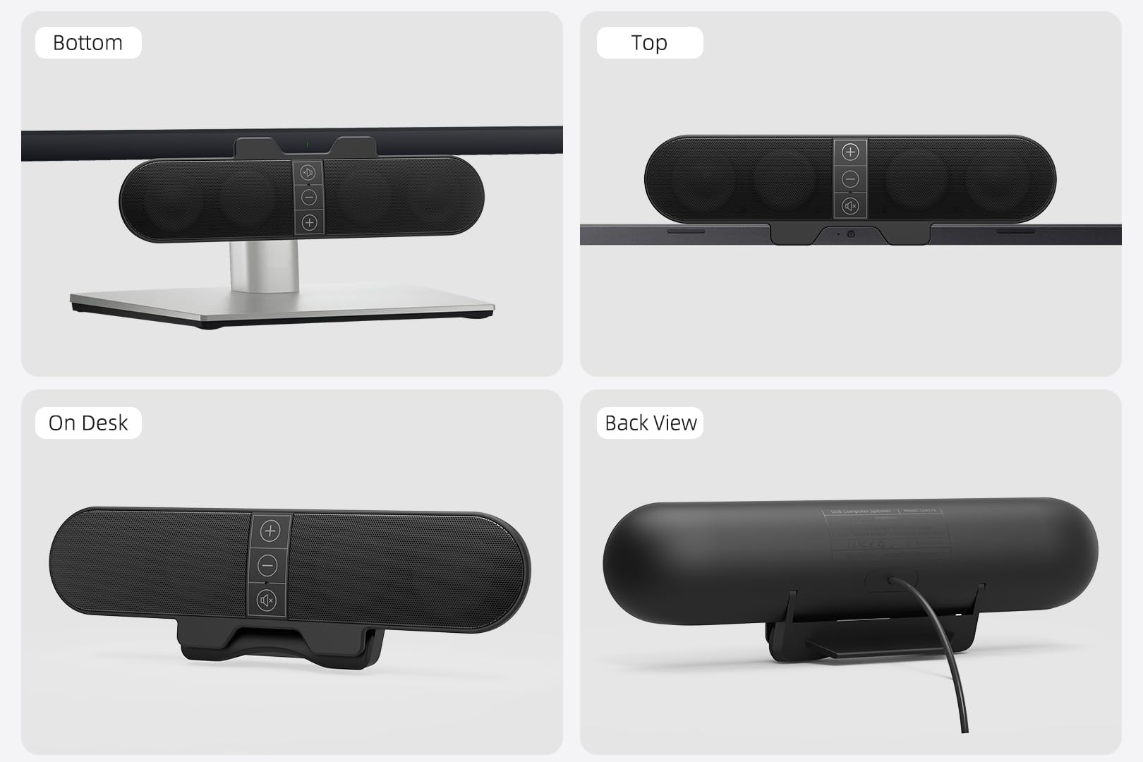 - [ADAPTIVE-CHANNEL-SWITCHING WITH G-SENSOR] - Ensures the left and right sound channels remain correctly positioned whether the speaker is clamped to the top or bottom of your monitor.