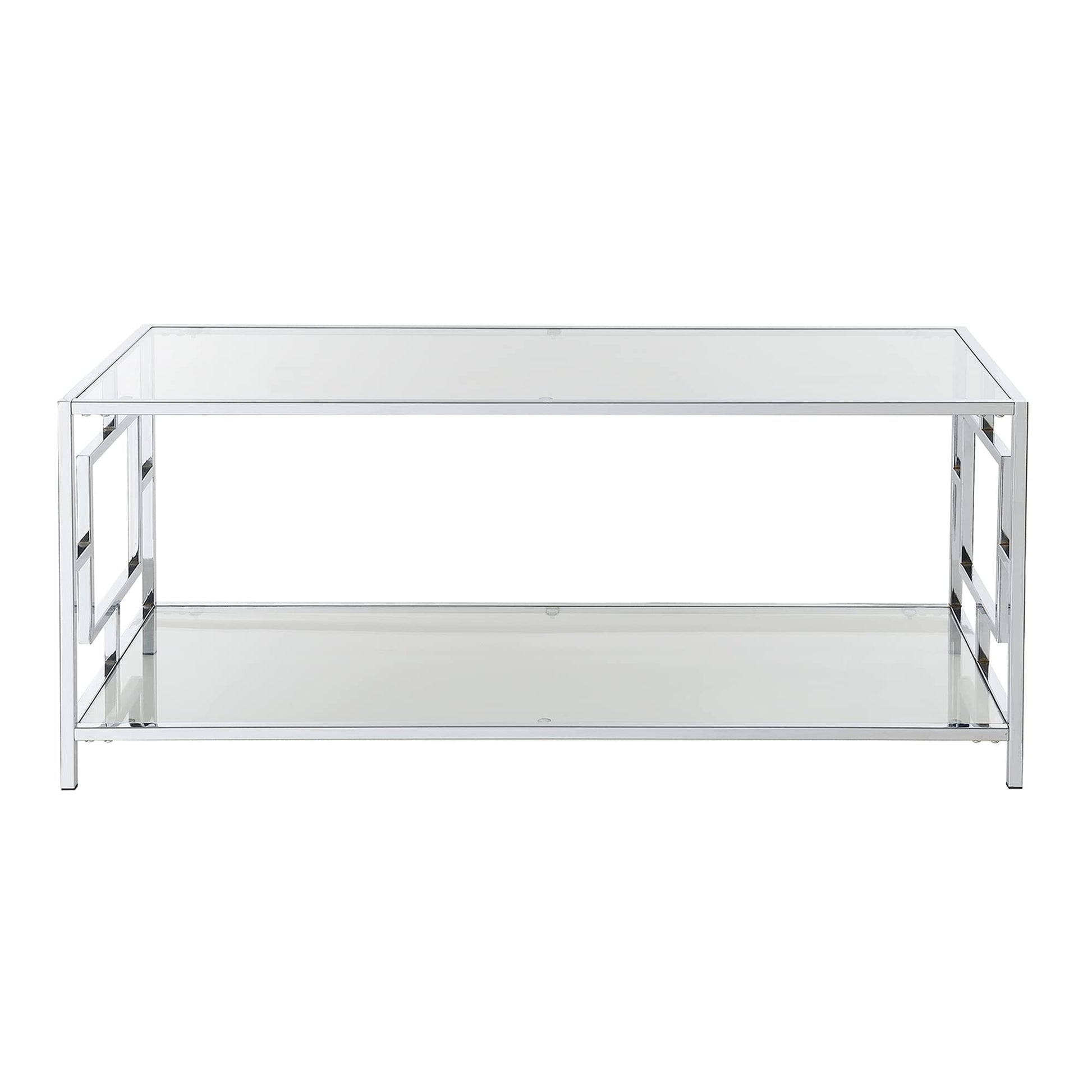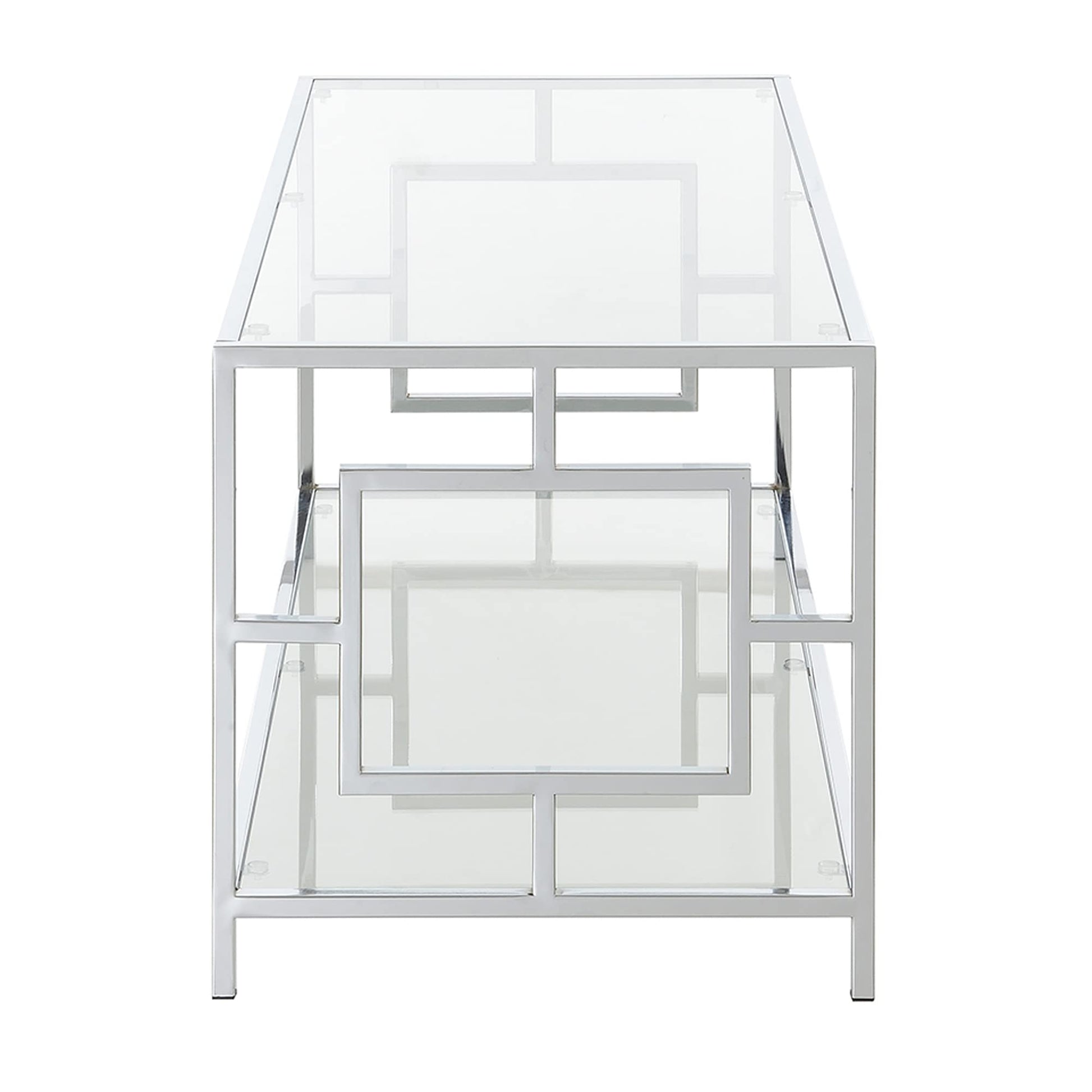 Details: Turn your favorite room into luxury with the Town Square Chrome Coffee Table with Shelf by Convenience Concepts. This contemporary table will bring glamour and functionality anywhere it stands. Two tiers of spacious shelves, both crafted from clear tempered glass, offer plenty of room to showcase elegant decor. The sturdy chrome metal frame boasts an open concept design and a beautiful geometric silhouette. Removable shelves make it easy to clean and maintain this unique unit. Simple and easy assembly in just three steps will have you admiring your glamourous setup in no time. Shop coordinating pieces from the Town Square Chrome Collection from Convenience Concepts, each sold separately.