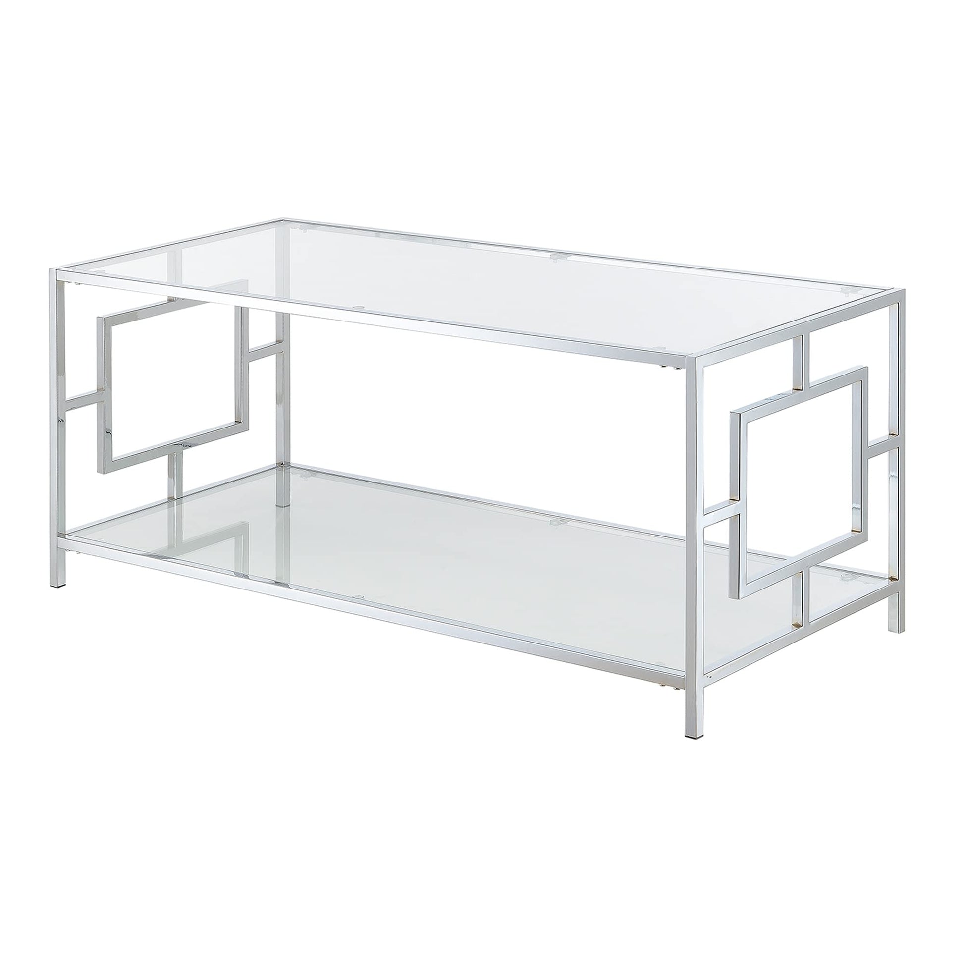 Convenience Concepts Town Square Coffee Contemporary Modern Table with Storage Shelf for Living Room, 42", Glass/Chrome