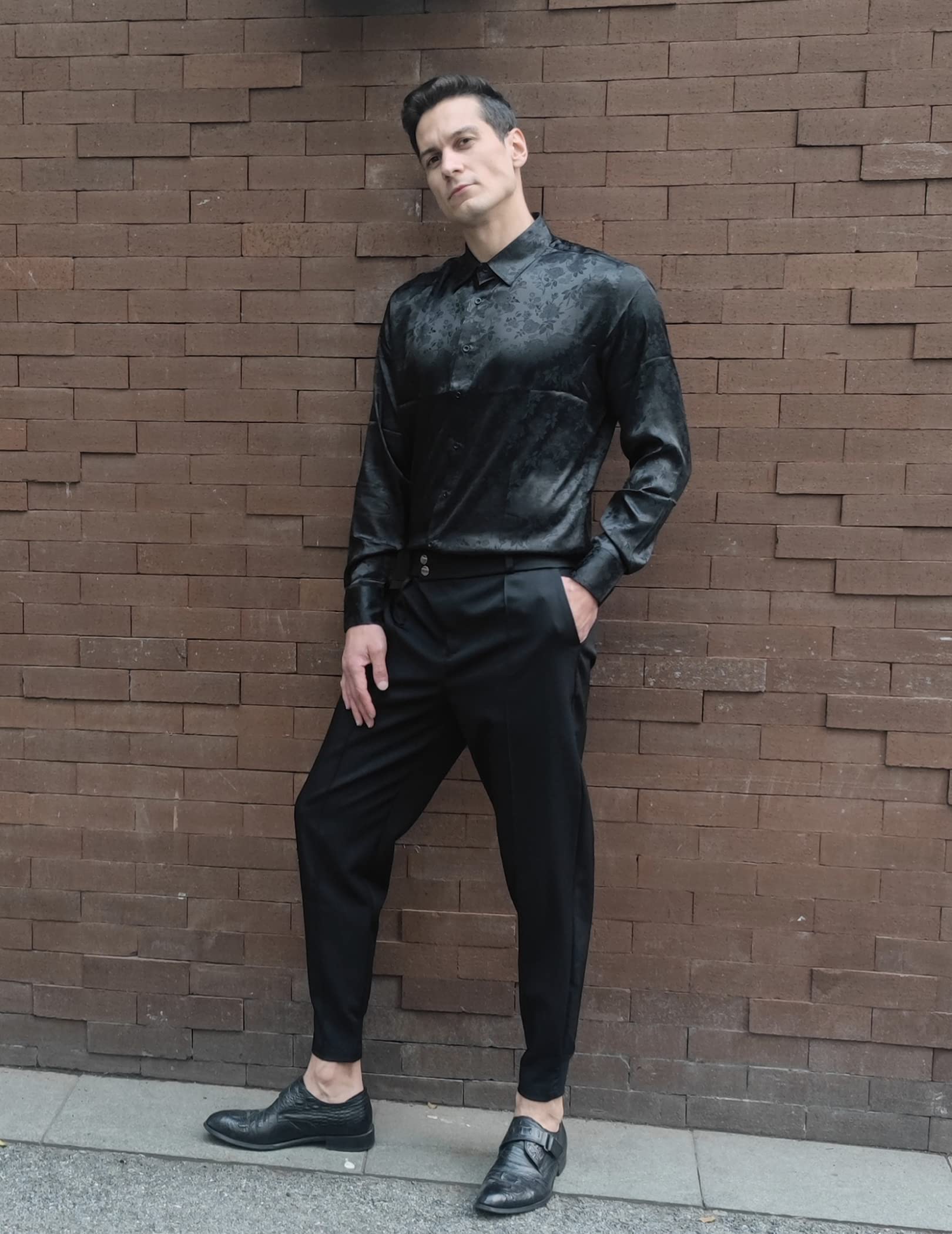 - MENS SHIRT- Slim fit, fits true to size,High Quality Jacquard and Shiny Material.Fashion authentics design, a luxurious garment characterized by simplicity and glamour, adds a touch of elegance to any outfit,make you feel good when wearing.