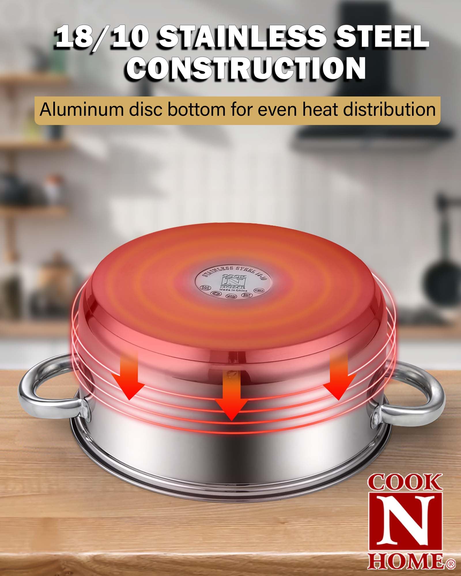 - Excellent Heat Distribution: The stainless steel pots and pans set is made of mirror-polished 18/10 stainless steel with an aluminum disc bottom for even and quick heat distribution, preventing hot spots