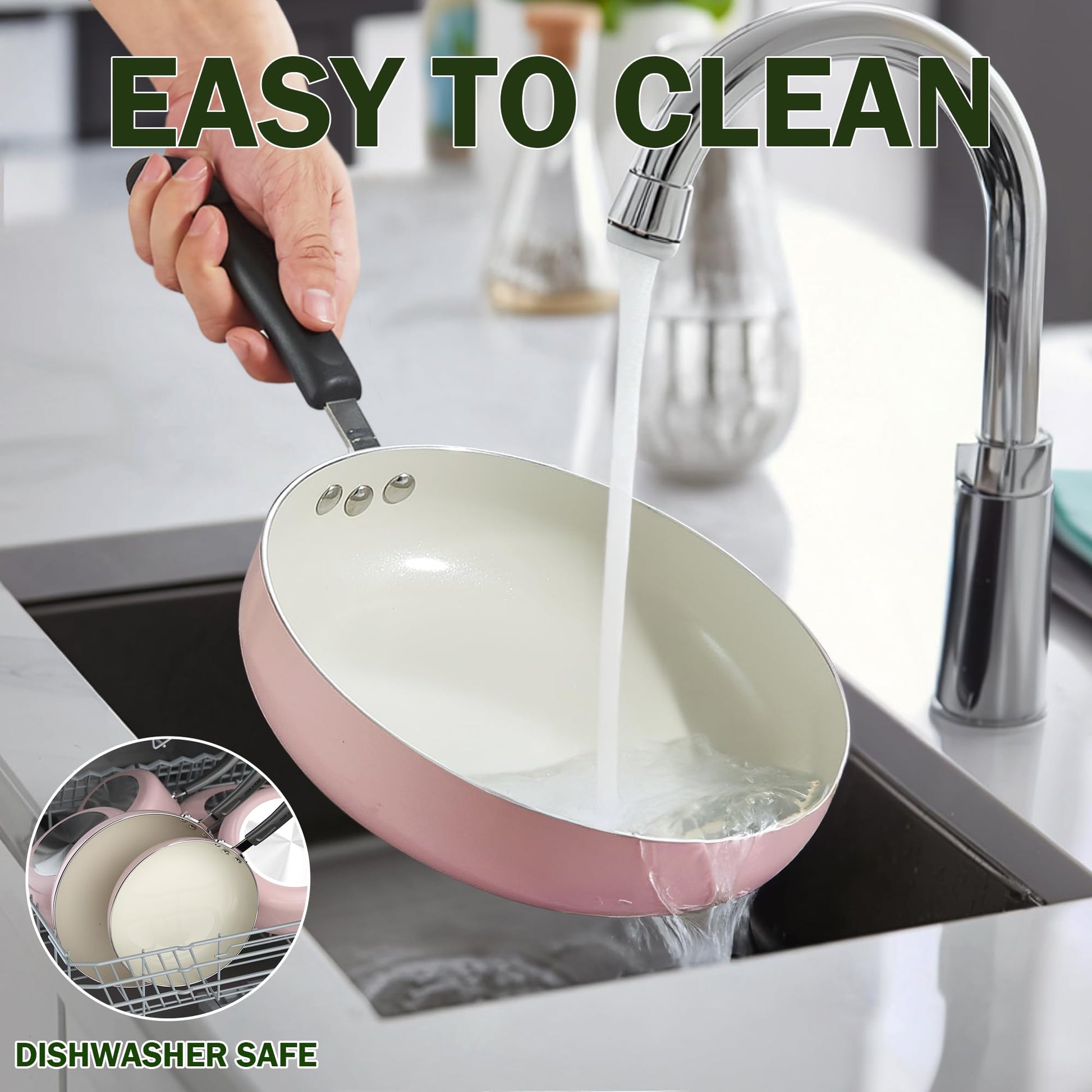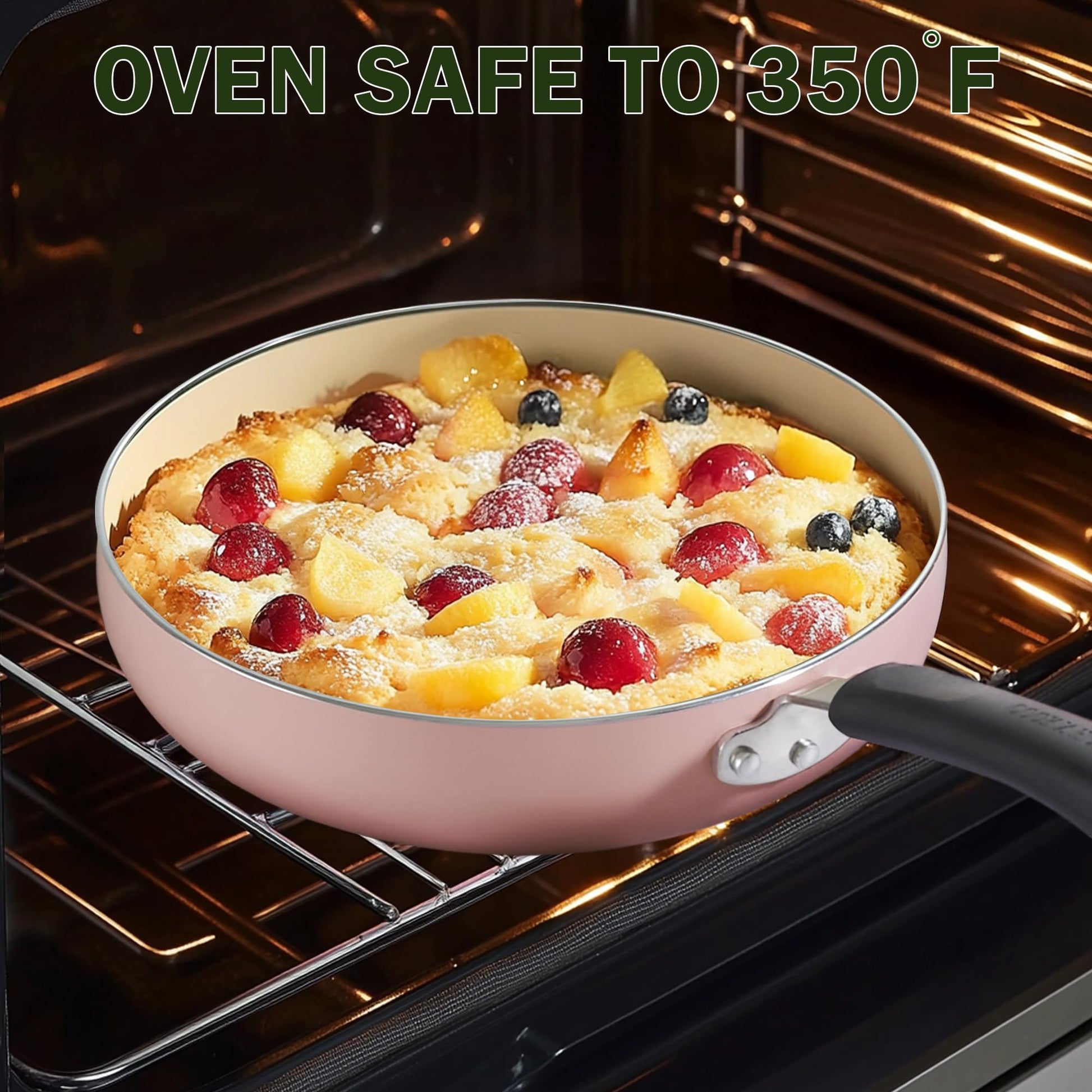 - Compatible with Most Stovetops: The pot and pan set is works on gas, electric, glass, and halogen stovetops; Not Induction; Oven safe to 350℉; Dishwasher safe