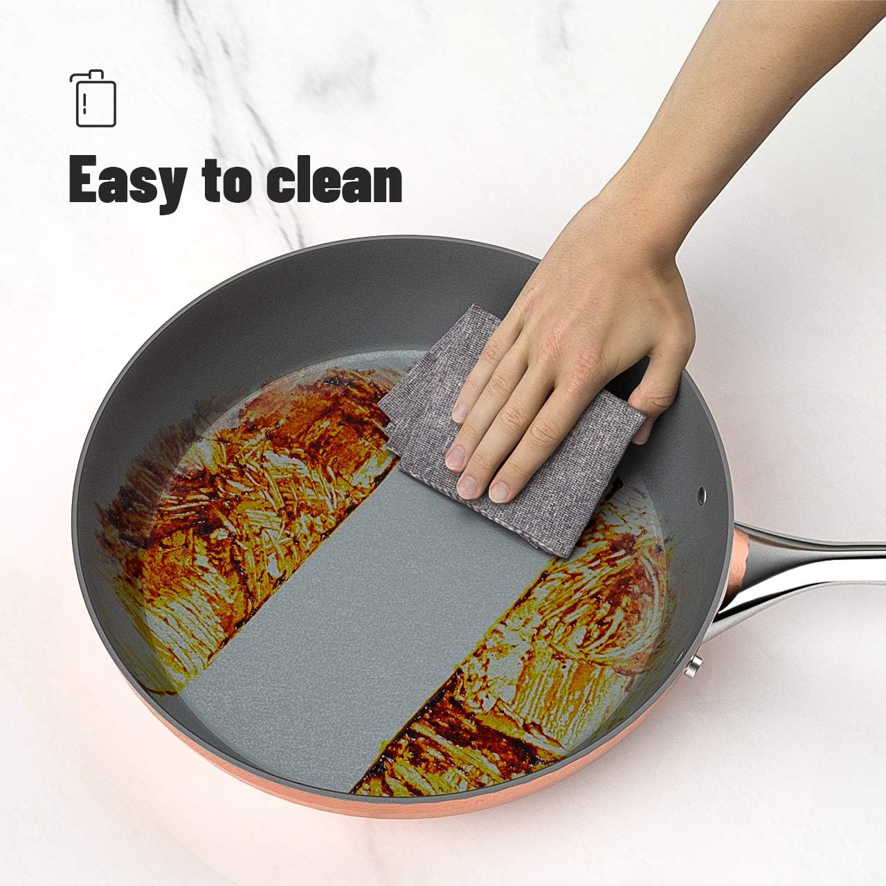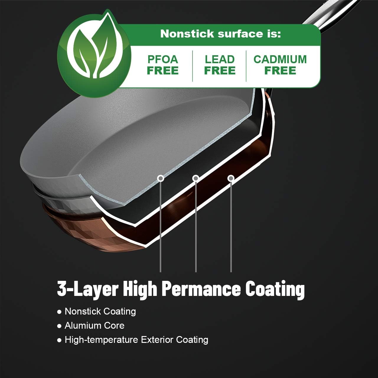 - 【Safe Non Stick Ceramic Coating】High quality materials guarantee long-term use and health.It requires less oil or fat while cooking. No PTFE, PFOA and cadmium.Won't leach harmful chemicals into your food.