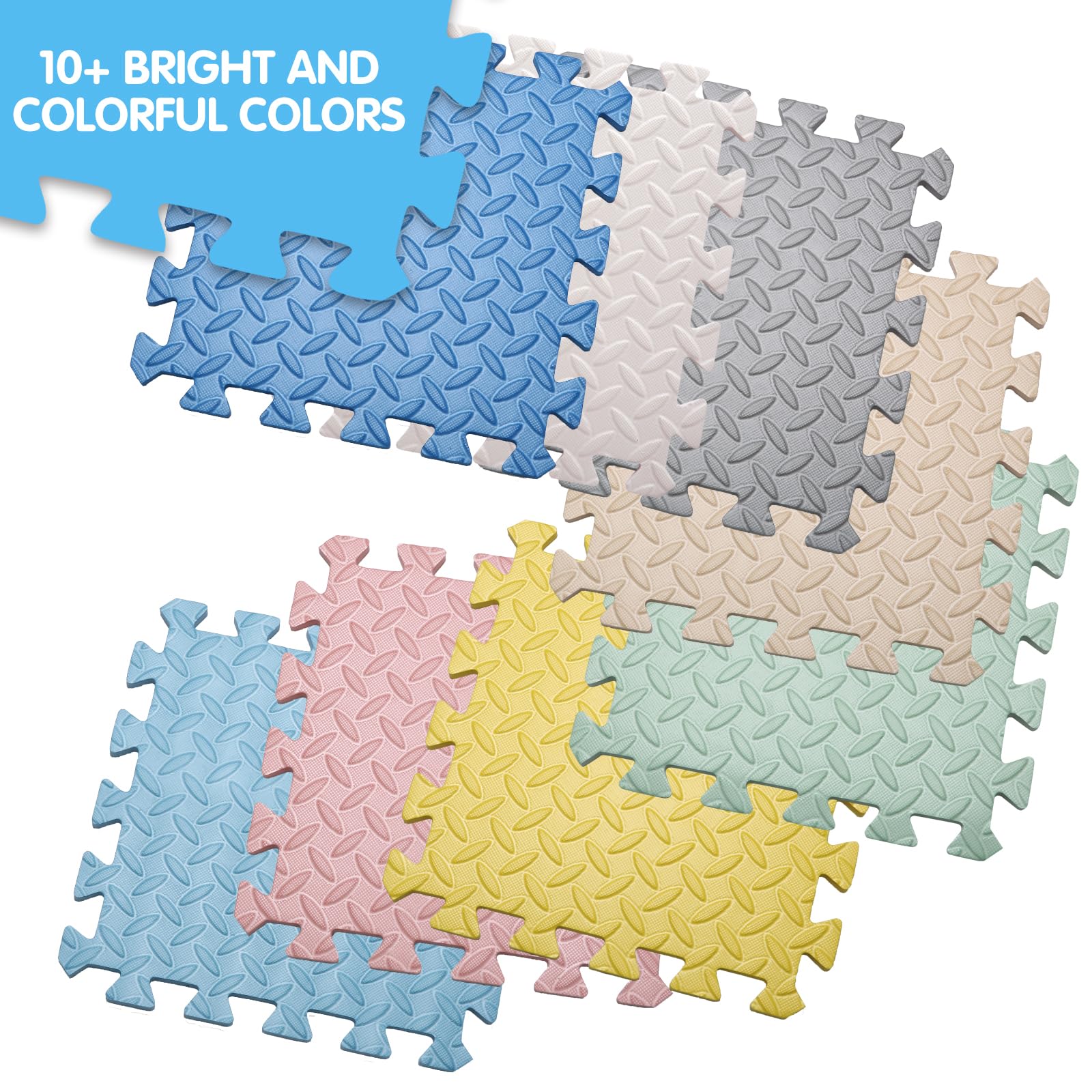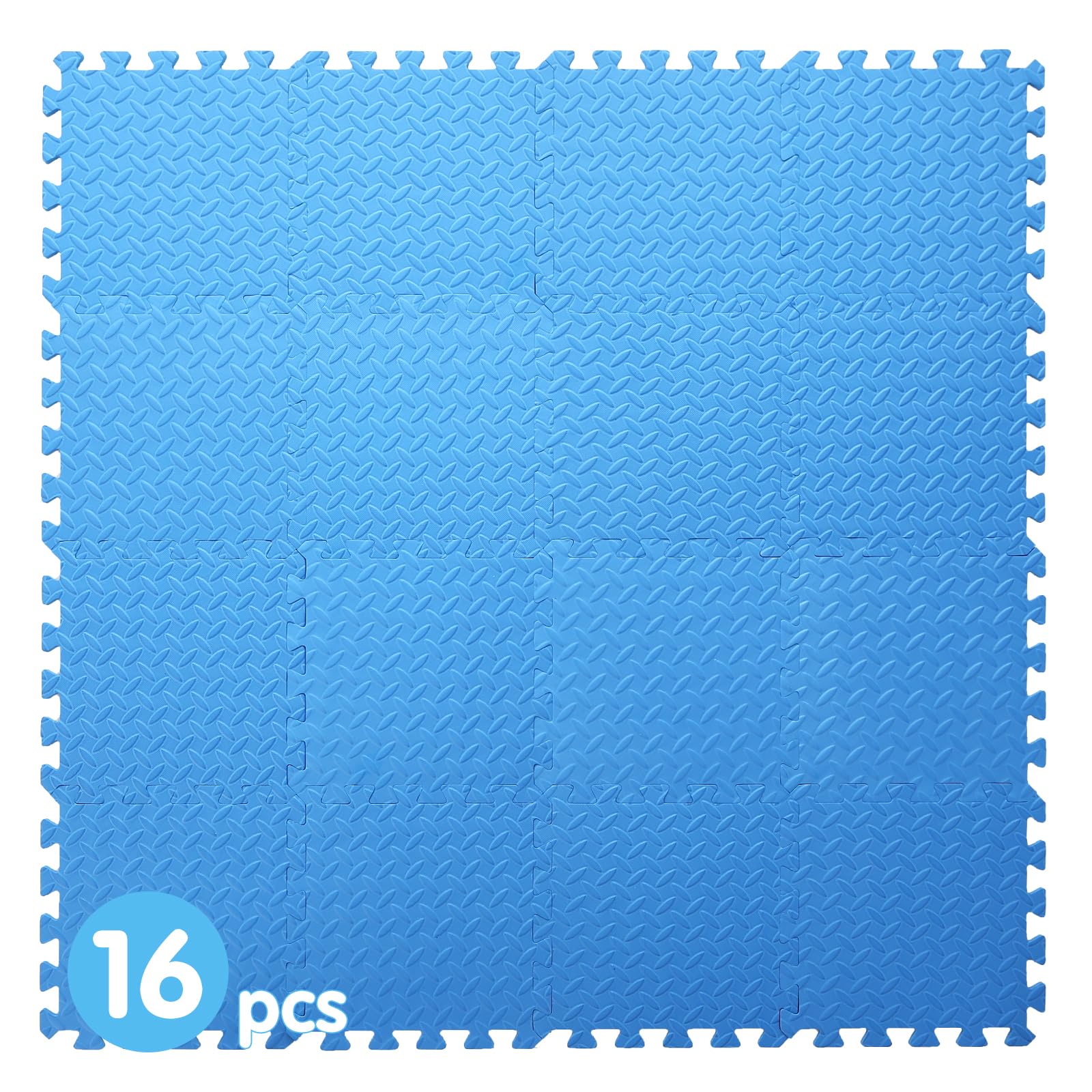 - 16 Tiles Solid colored foam floor tiles --- 16 Pcs/set of 11.81*11.81 inch interlocking foam pads, 0.4 inch thick, covering approximately 16 SQ.FT after assembled
