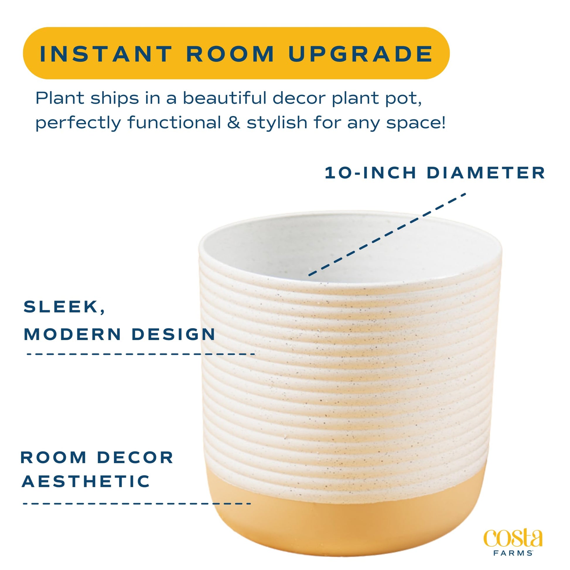 Details: Money Tree features solid, green foliage. The Money Tree is great for large spaces. It does well in spaces that have medium, indirect light. Place Money Tree in a spot that receives medium light. Water your plant about once a week with approximately 2-3 cups and be sure all excess water drains away. Adjust as needed for your environment. Do not let the Money Tree sit in water or overly soggy soil.The height at dispatch is approximately 36-48 inches tall, measured from the bottom of the pot to the top of the plant. The Money Tree arrives in a 10-inch décor pot. To avoid water spillage, this container does not have holes.The Money Tree is a moderate grower. Exact growth rate depends on the care provided and its environment. Give it a boost during the warm months of Spring and Summer with a general-purpose fertilizer that is formulated for potted plants. Follow the instructions on the fertilizer package for the best use. When the plant out grows the current container, it is time to repot. To repot the Money Tree, gently remove it from its current container and place it into a slightly larger container. Fill in any empty spaces with new and fresh soil and water thoroughly. This plant is considered hardy in USDA Zone 10-12.Be aware of third-party sellers; other companies try to imitate our quality. There are no other authorized Costa Farms sellers. Plants are living things; each one is slightly different, so the plant you receive may vary from the photo. Our growers hand-pick the healthiest and highest-quality plants. We package our plants for delivery with great care so they'll arrive at your home ready to be displayed. Delivered fresh from our farm to you, Costa Farms is passionate about delivering happy, healthy, beautiful plants. Costa Farms plants are not intended for human or animal consumption. Keep out of reach of children and pets.