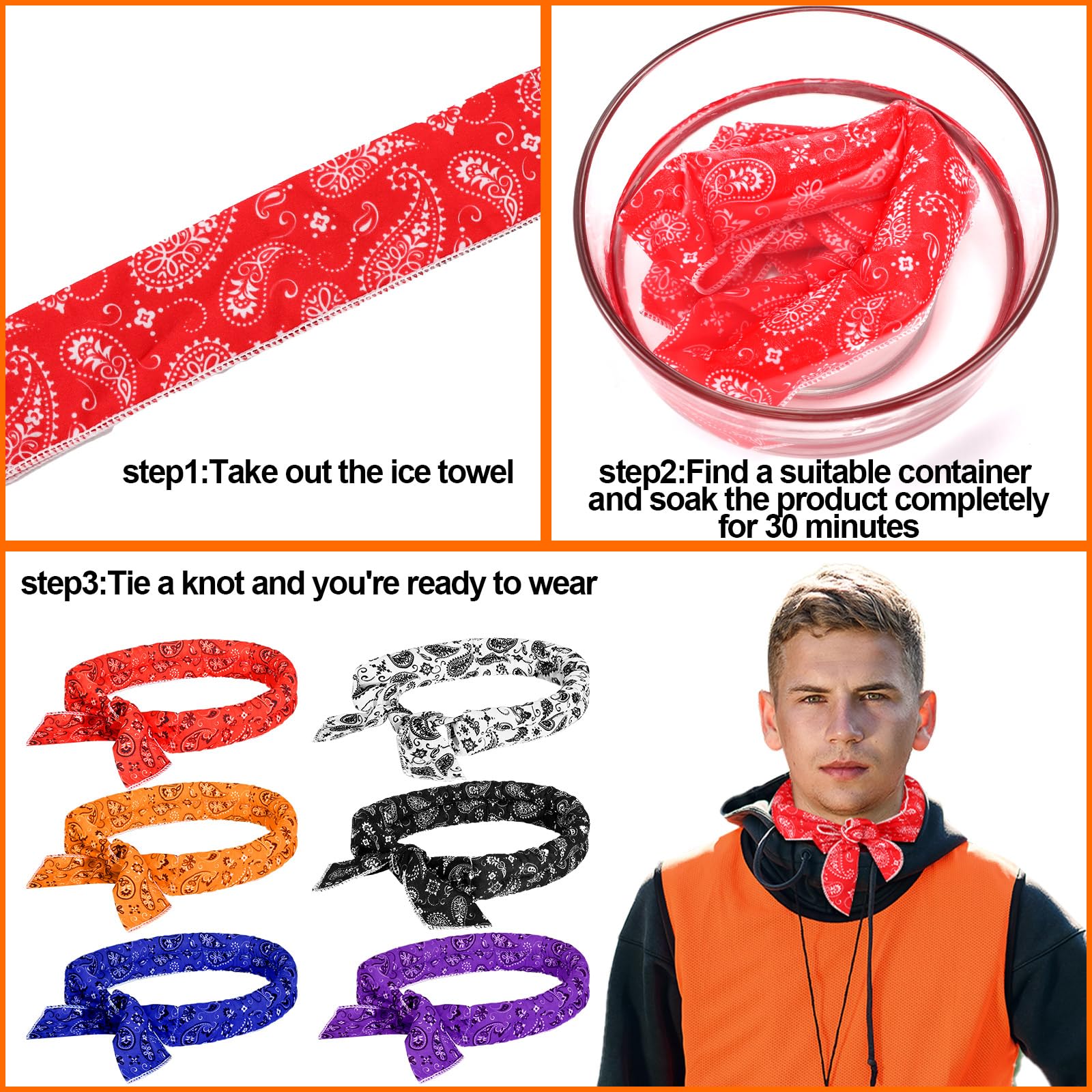 - Convenient to Use: find a container with a suitable size, put it in cold water, soak it for about 30 minutes and take it out for use; When using it, just wrap it around your neck and head and tie a knot; It can make you charming and cool in summer