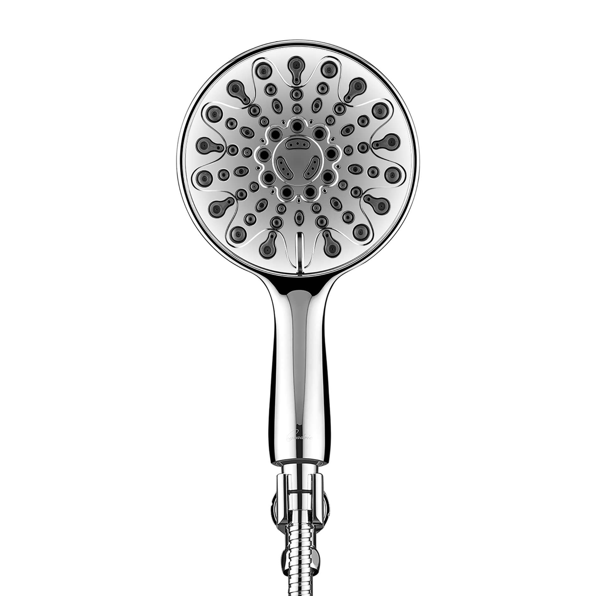 Couradric Handheld Shower Head, 6" Chrome Face 6 Spray Setting Shower Head with High Pressure, Brass Swivel Ball Mount and Extra Long Flexible Stainless Steel Hose