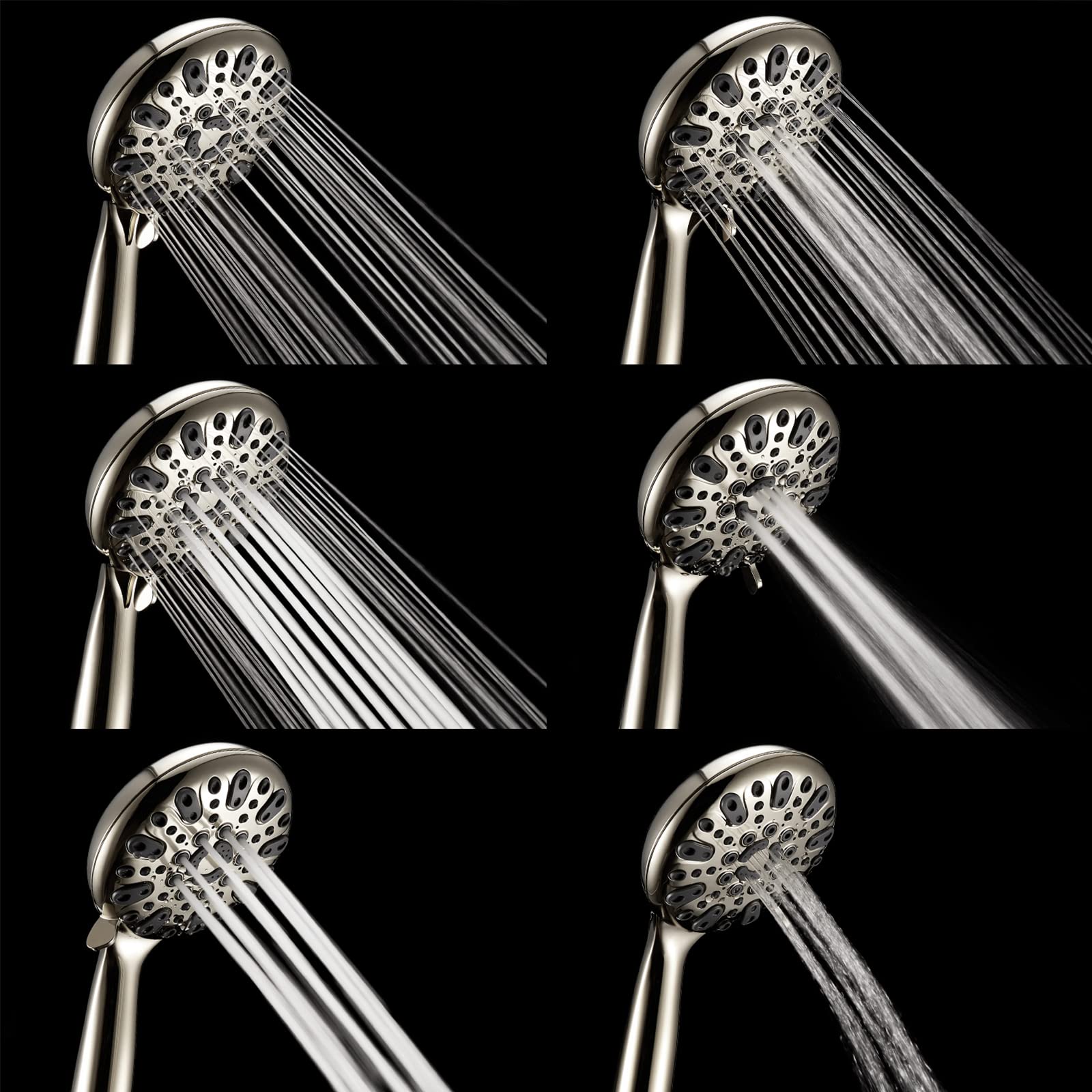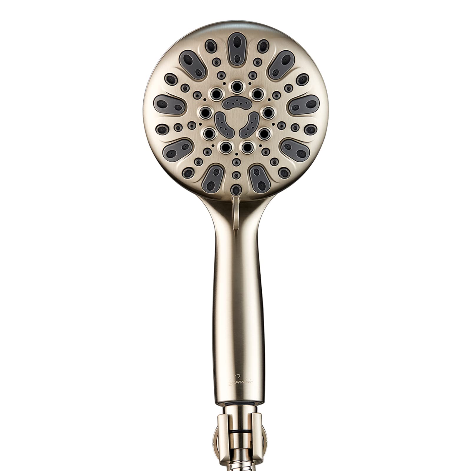 Couradric Handheld Shower Head, 6 Spray Setting High Pressure Shower Head with Brass Swivel Ball Bracket and Extra Long Stainless Steel Hose, Brushed Nickel, 5"