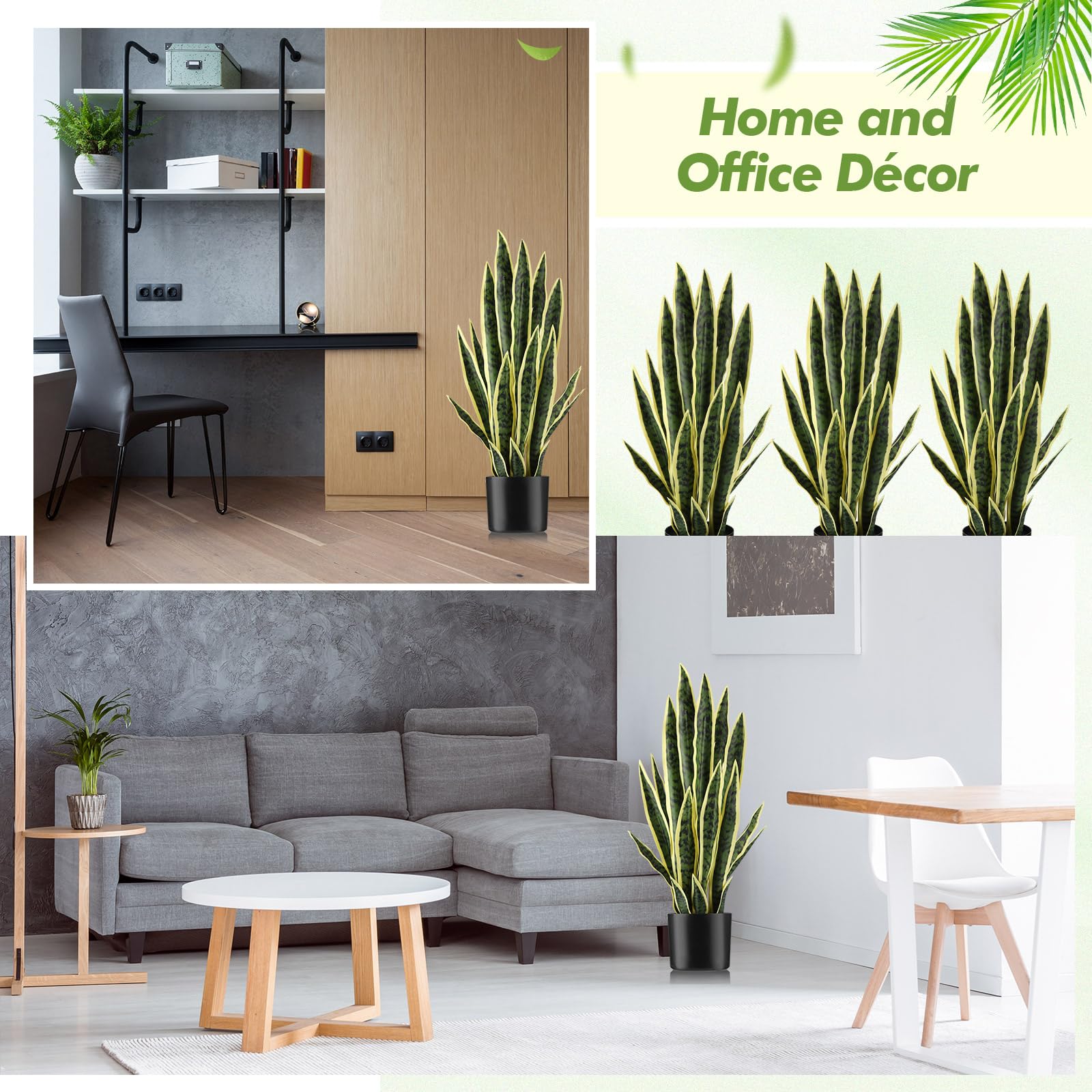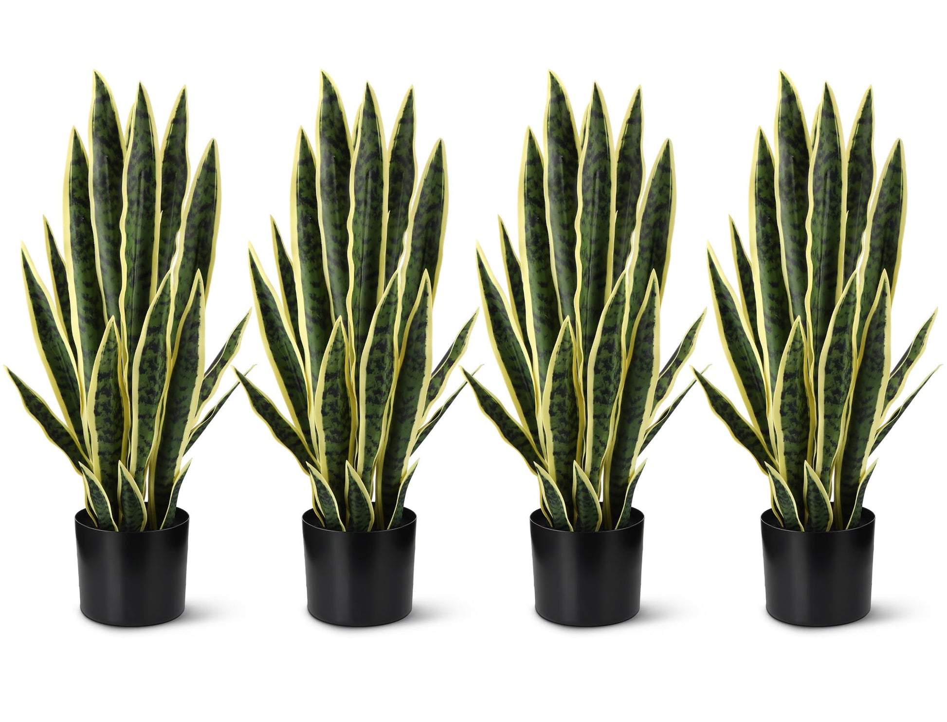 Crowye 4 Pack 2.25 Ft Tall Artificial Snake Plant Faux Sansevieria Plant Large Fake Snake Bulk in Pot for Home Office Housewarming Gift