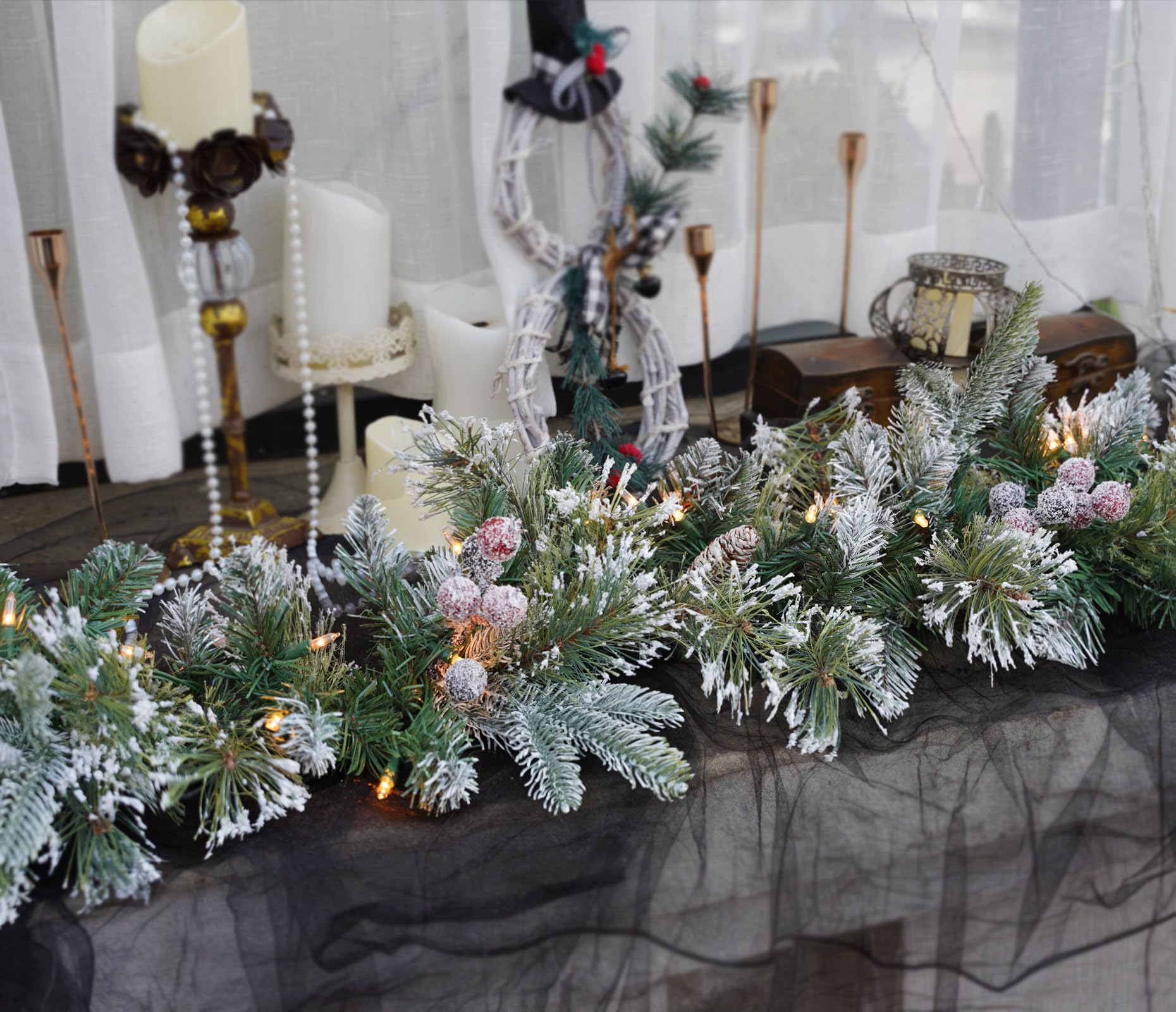 - 【High Quality】This wreath is made of sturdy, high-quality materials and hypoallergenic, fireproof needles, designed to bring a festive atmosphere while being safe.Battery operated : No, Plug in,Christmas Garland features 'end to end' plugs for connecting several together