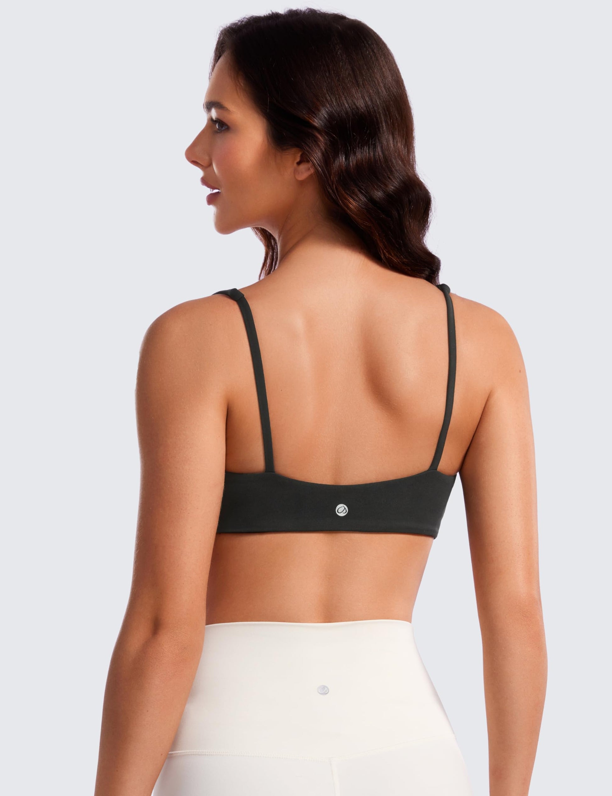 CRZ YOGA Butterluxe Spaghetti Strap Sports Bras for Women - Square Neck Yoga Wireless Low Coverage Padded Cami Crop Top Black X-Small