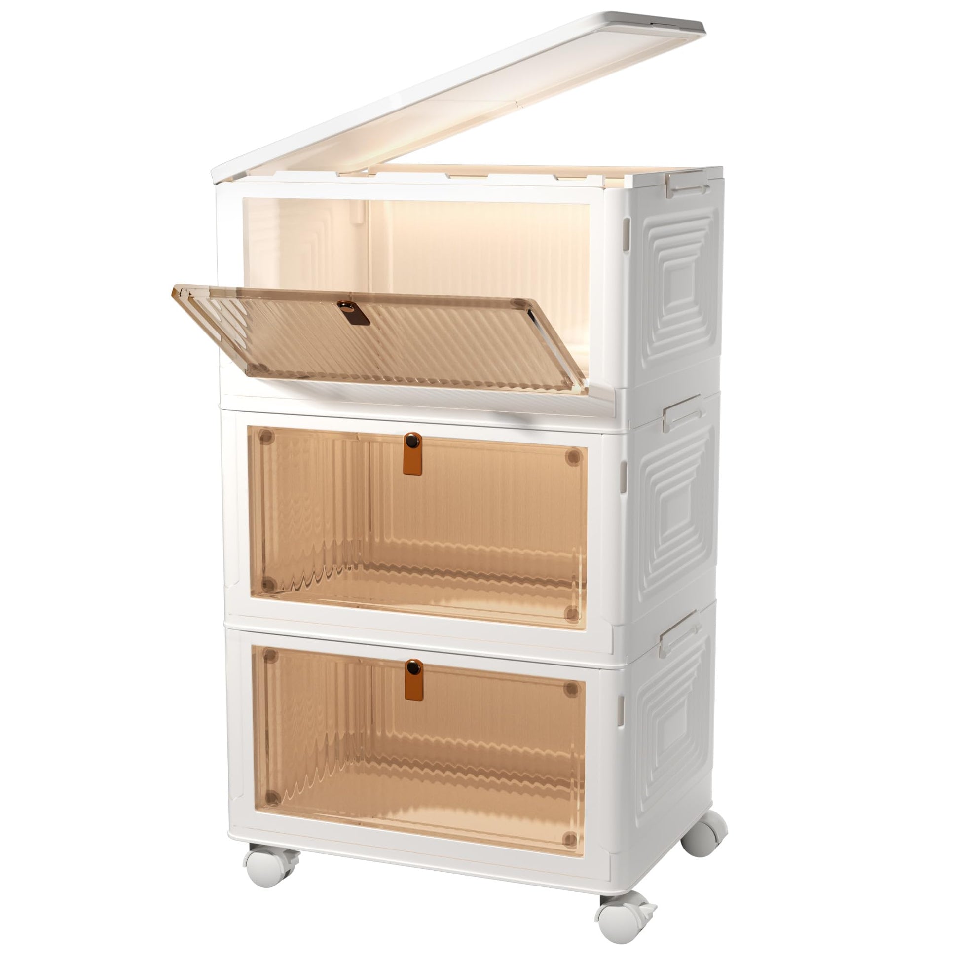 CTSNSLH 4 Tier Plastic Storage Bins and Boxes Organizer - Stackable with Lids for Bedroom, Living Room, Office - Foldable Containers