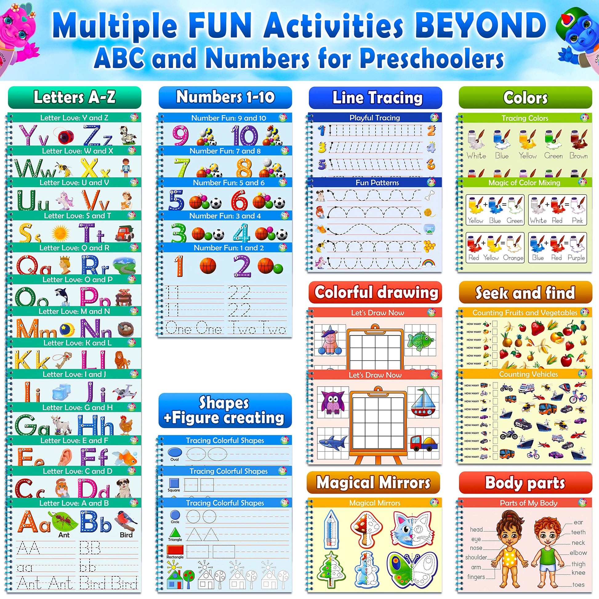 - 【Toddler Preschool Learning Activities Workbook】- With 11 fun & stimulating activities, our toddler books encourage early cognitive development & cover all the essential skills your child needs; beyond ABC Learning for Toddlers Curious2Learn activity books for kids ages 3-5 help your children learn alphabets, numbers, colors, shapes, tracing, coloring & more in an engaging way