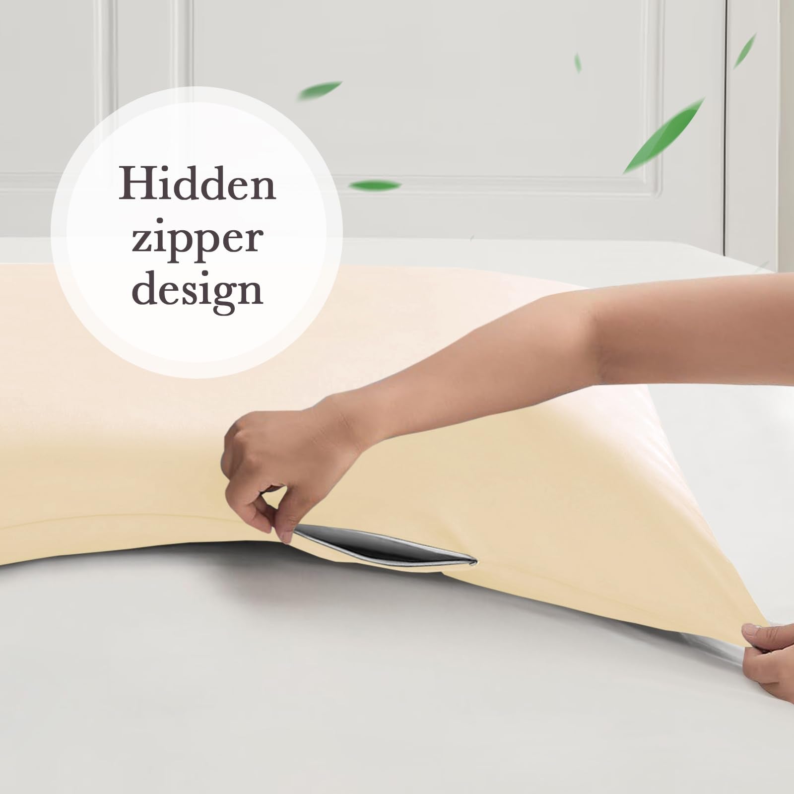 Curved Pillow Case Queen Size, Side Sleeper Pillow Cases Cover Cooling Rayon Derived from Bamboo with Zipper for hot Sleepers Hair and Skin, Breathable Silky Soft Pillowcase 1 Pack 20 * 30 Inches