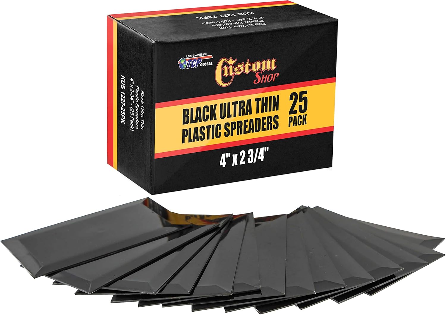 Custom Shop 4 x 2-3/4 Inch Plastic Body Filler Spreader Tools (25 Pack) for Automotive Body Fillers, Putties, Glazes, Epoxy Resin, Caulk, Glues - Double Sided Plastic Spreader Tool