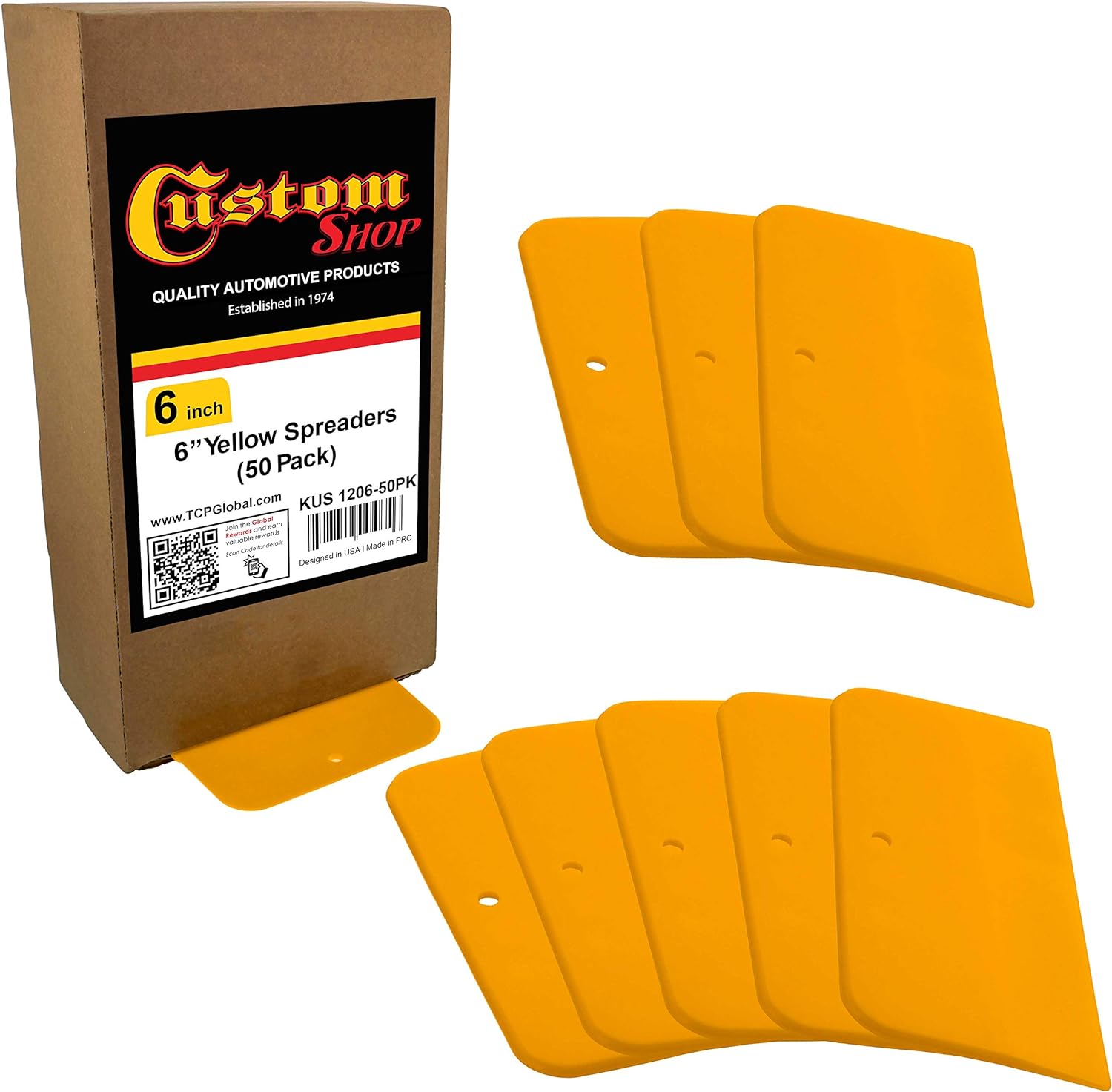 Custom Shop 6 Inch Plastic Body Filler Spreader Tools for Automotive Body Fillers (50 Pack), Putties, Glazes, Epoxy Resin, Caulk, Glues - Plastic Spreader Tool