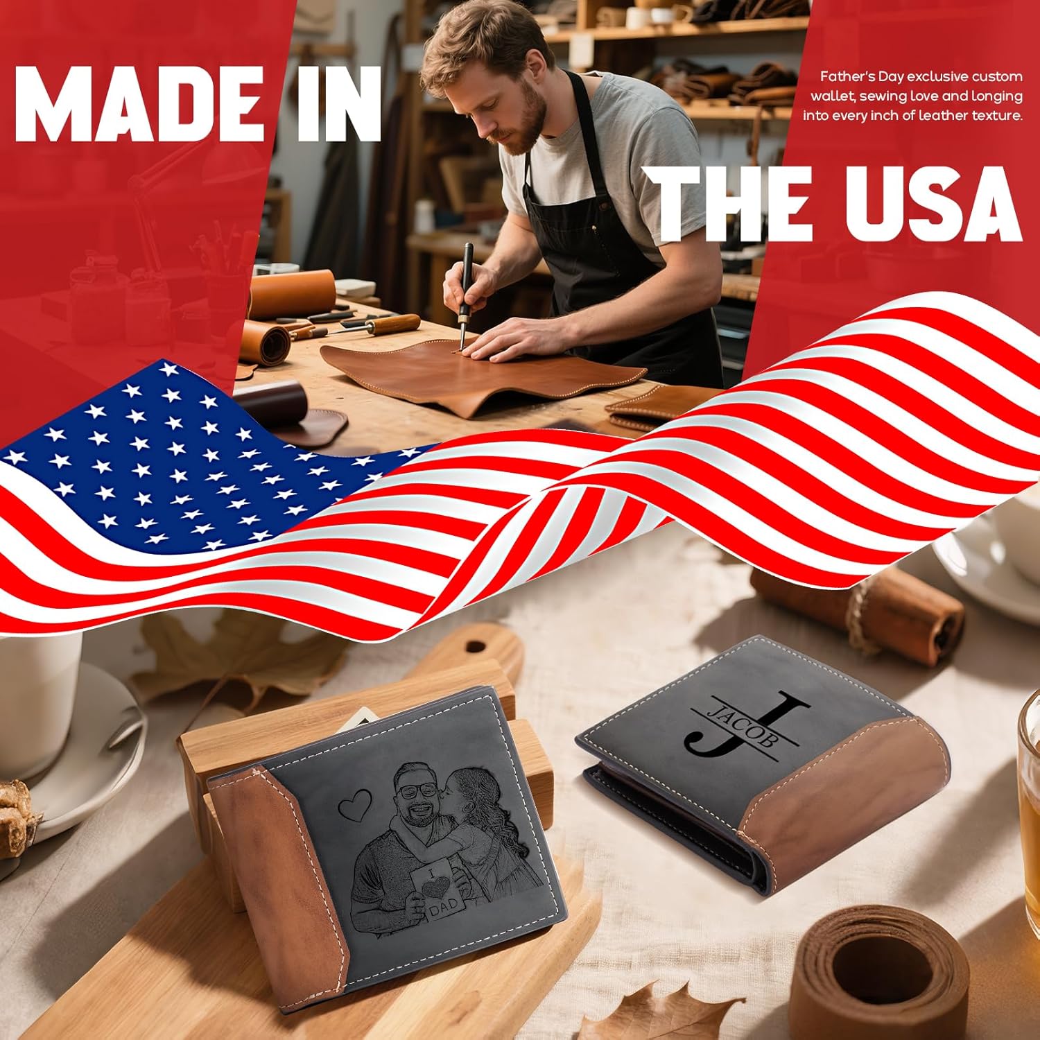 Custom Wallets for Men Personalized Engraved Leather Photo Wallet Dad Gifts for Fathers Day