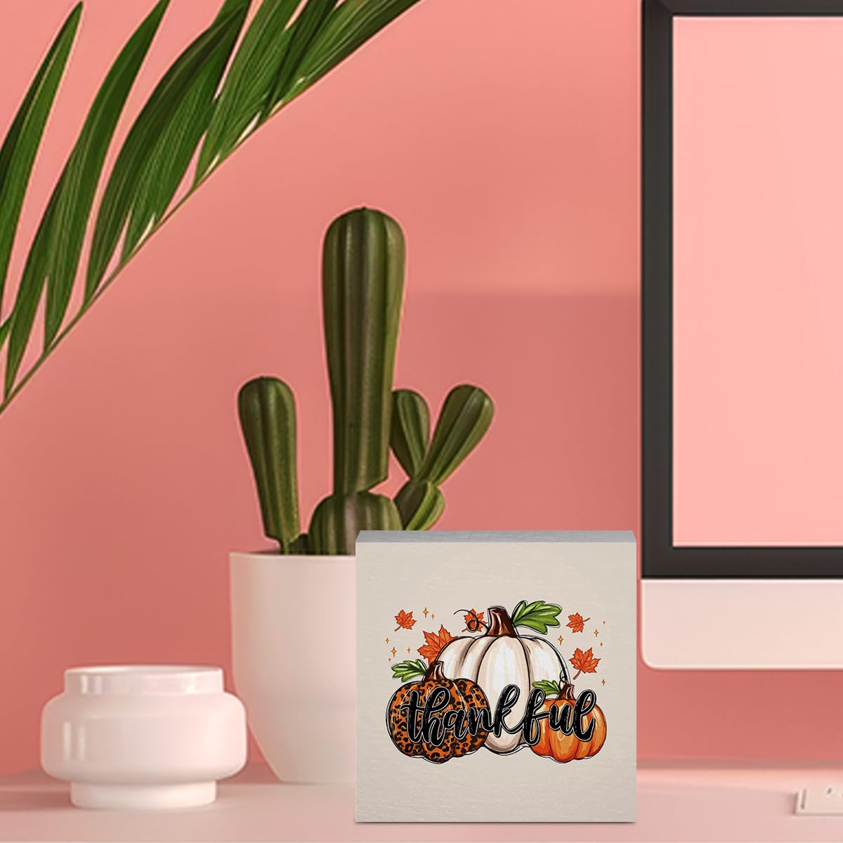 Cute Thankful Fall Decor Thanksgiving Fall Decorations for Home Office Autumn Pumpkin Decor Funny Autumn Decorations for Desk Table 5 x 5 inches