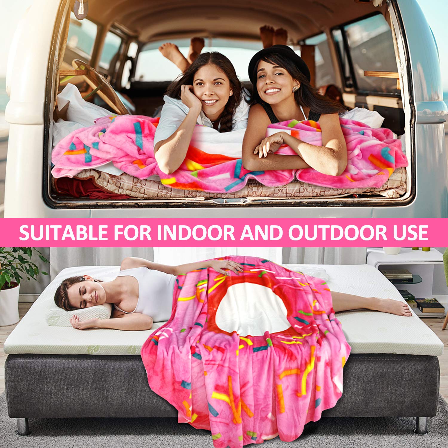 - 【For All Seasons】The lightweight donut blanket can meet your need in every season, not matter comfortable summer napping in air-condition room or provide enough warm for winter. Cute blankets perfect for your living room, bedroom, sofa, couch, patio, office, bed, car seat, indoor /outdoor camping and picnics.